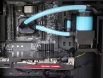 We used a substantial radiator on the CPU and did not extend the loop to the graphics card with the result that our Core i7-5820K remained icy cold. The Asus Strix R9 390 ran at 84 degrees under load, just as we would expect.