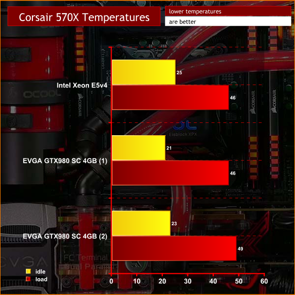 To put this case through its cooling paces we will be using a test system consisting of an Intel Xeon E5 v4, dual GTX 980 graphics cards and an SSD. This system allows us to produce a substantial amount of heat and effectively test the Corsair Crystal 570X‘s cooling capabilities.