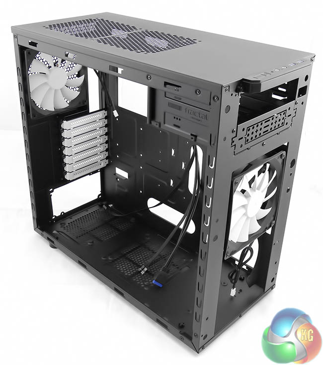 At first glance the Fractal Design Core 3300 has been constructed to deliver massive air flow with its wide body layout and novel drive plate which clears the path for cooling air as it flows between the two 140mm case fans. Well that is the impression given however it is pretty much entirely wrong. In fact the Core 3300 does a competent job of cooling yet it is surprisingly quiet.