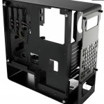 This 904 Plus version comes either in silver or black rather than silver or gold so black is the new option for 904 Plus and we wave bye-bye to gold. At the rear of the case they have added a cable management hole and inside the case there is more room for the power supply. At the front you may notice there is a new logo plate.