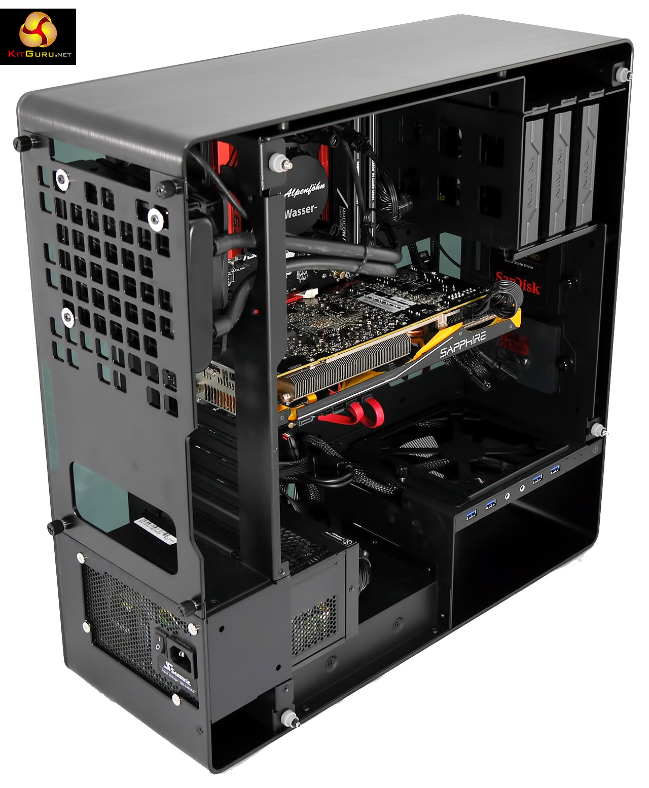 Using an Alpenfohn Wasser liquid cooler kept the Core i7 under control and the Sapphire R9 290 had no problem exhausting hot air to the rear, despite the extra obstacle of the cosmetic rear panel. The hardware ran a few degrees hotter than we would have liked but the components were under very heavy load in a test that seems out of place in a PC that is built more for looks than performance.