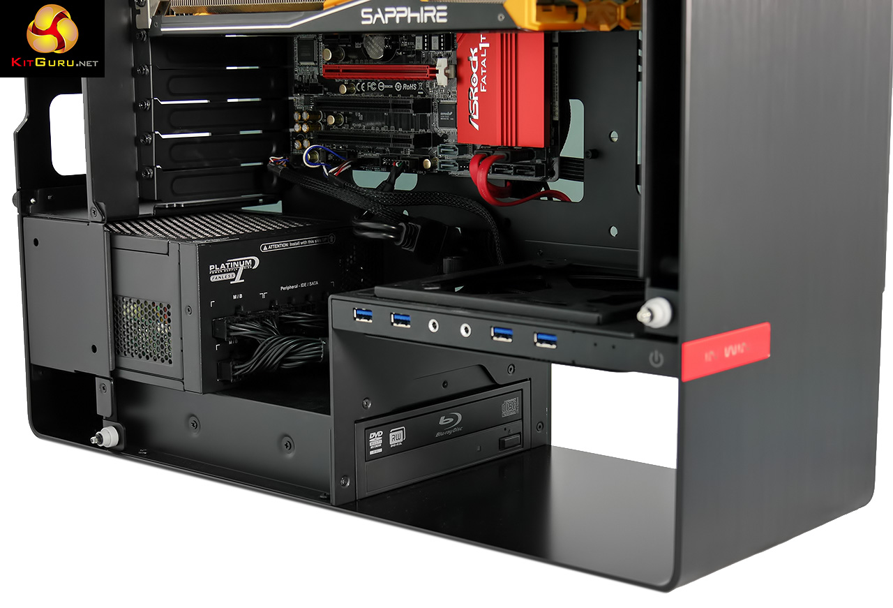 In-Win has worked hard to create a stylish case that looks amazing but there are direct consequences from this course of action. For example the four USB 3.0 ports, headset jacks, power button and, yes, the DVD drive are all at the bottom of the case. The only logical way to use the 904 Plus is by standing it on your desk, rather than down on the floor.