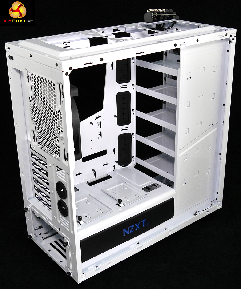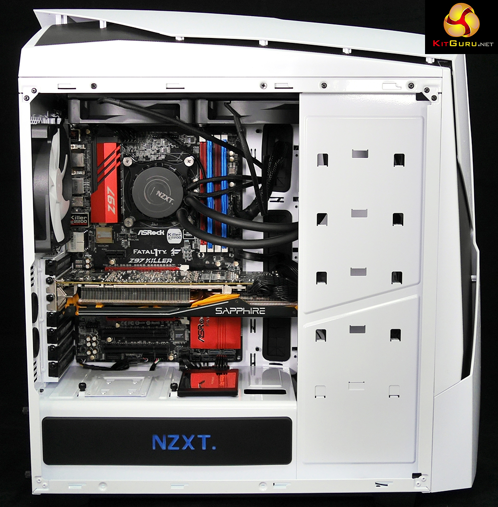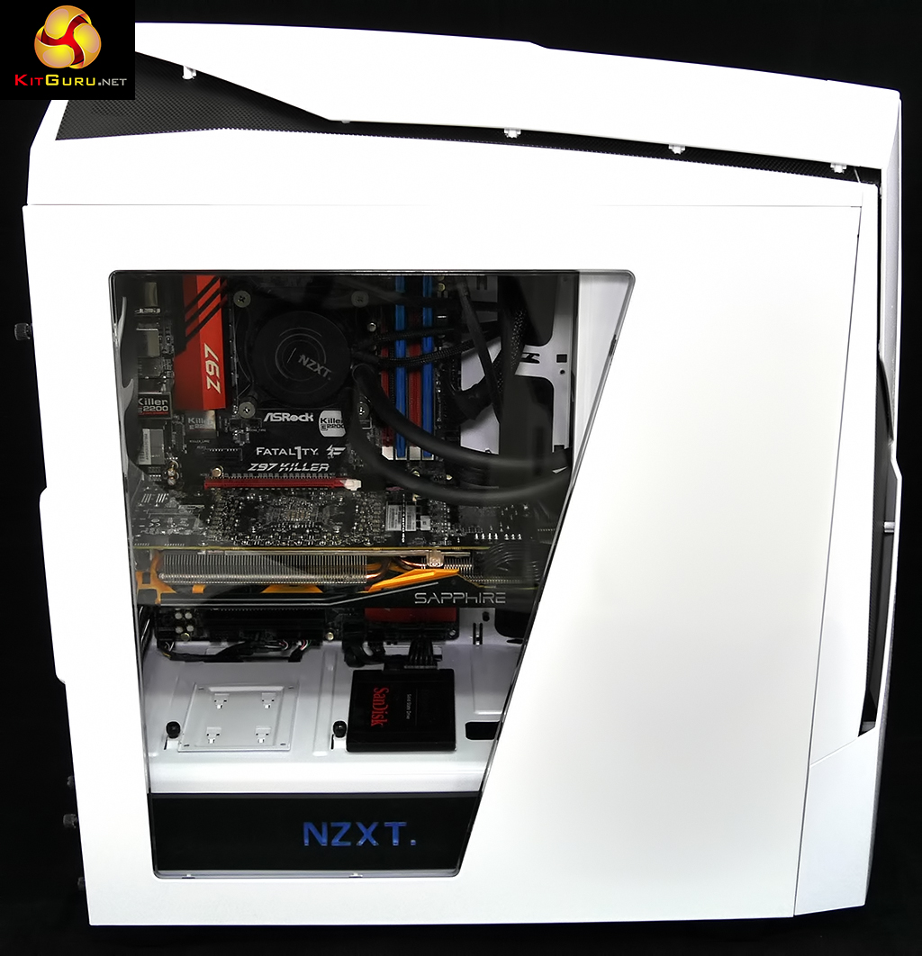 The pitched roof design of the top panel and the mesh sections at the top and front guarantee you can have as much (or as little) air flow as you desire. The N450 does indeed cool very well and the NZXT Kraken X61 280mm liquid cooler clearly played its part, along with the three 120mm front fans and 140mm exhaust fan.