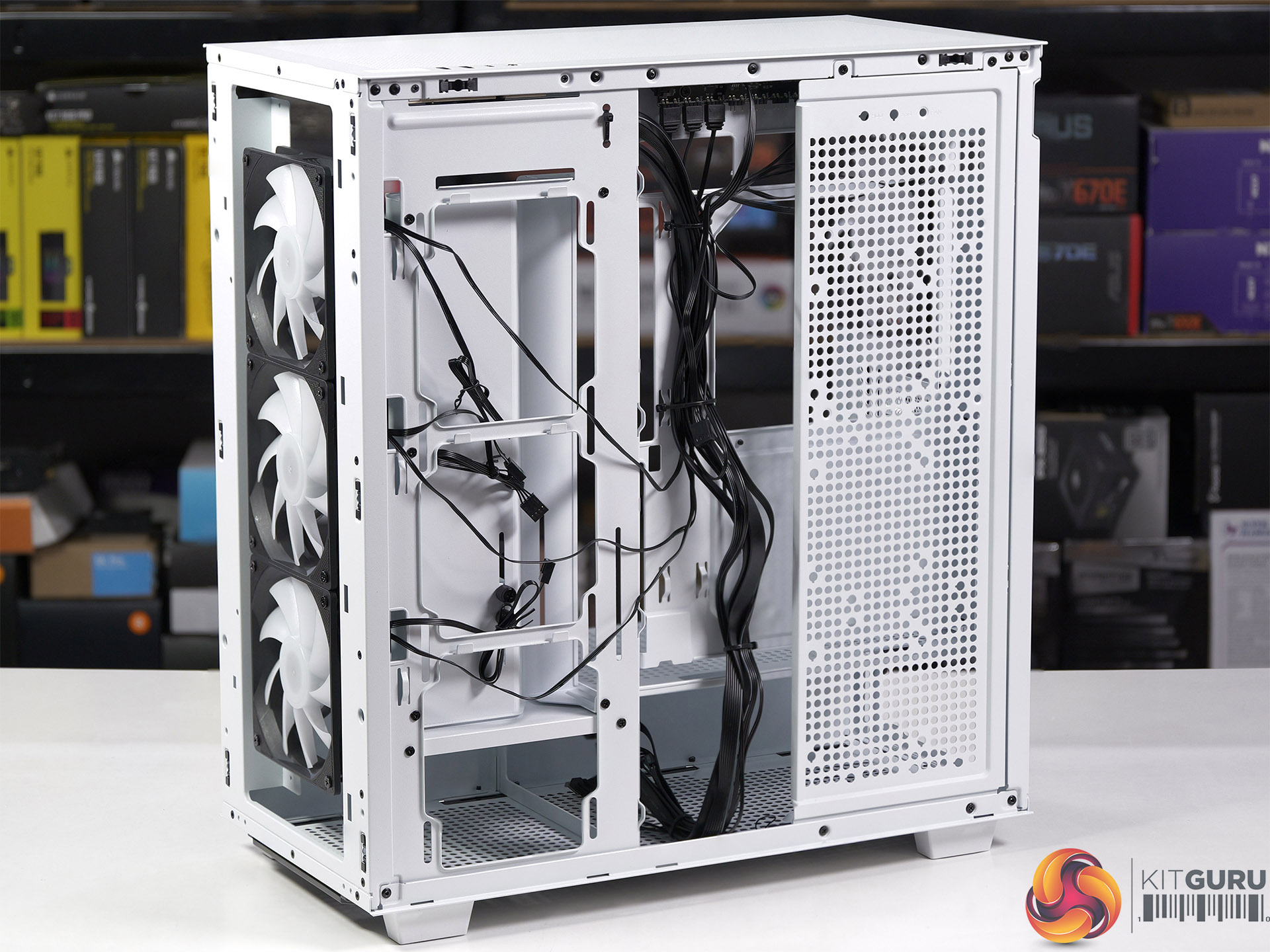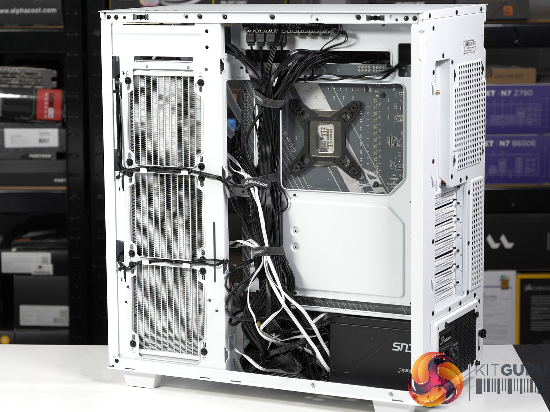 You might have noted in our review that we didn't make much fuss about the news that the radiator/fan rack in the roof was due to be updated. The explanation is that we were keen to avoid using top cooling as it was so time consuming and this gave us a good reason to use side cooling instead. This meant removing the front of the power supply shroud and carefully routing a bunch of fan cables to avoid mess and problems. We could have complained about that process but we are confident that after watching our video you will draw your own conclusions.