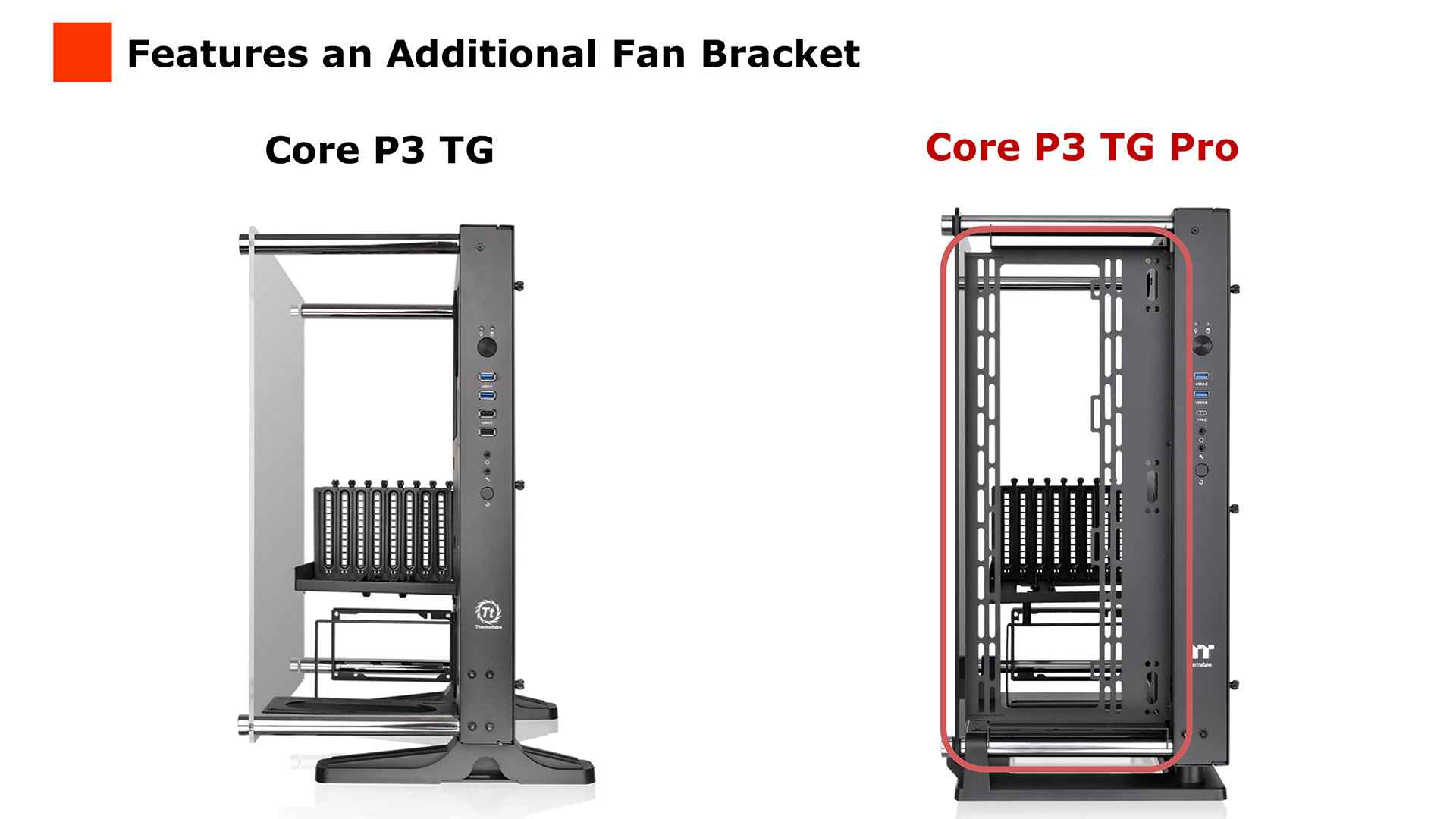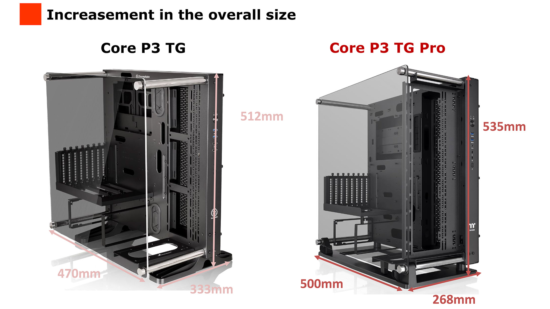 Our photo of the Mesh Liquid P3 KG in the original Core P3 dates from October 2017 and serves as a useful reminder of the limitations of the original chassis. When you look at the details of the Core P3 Pro you can see how Thermaltake has opened up the paths for air flow and has worked on increasing the options for radiators, fans and AIO coolers.