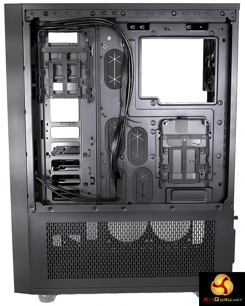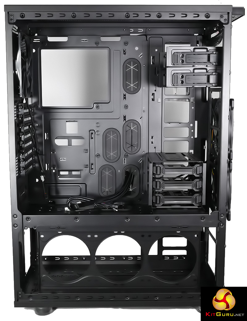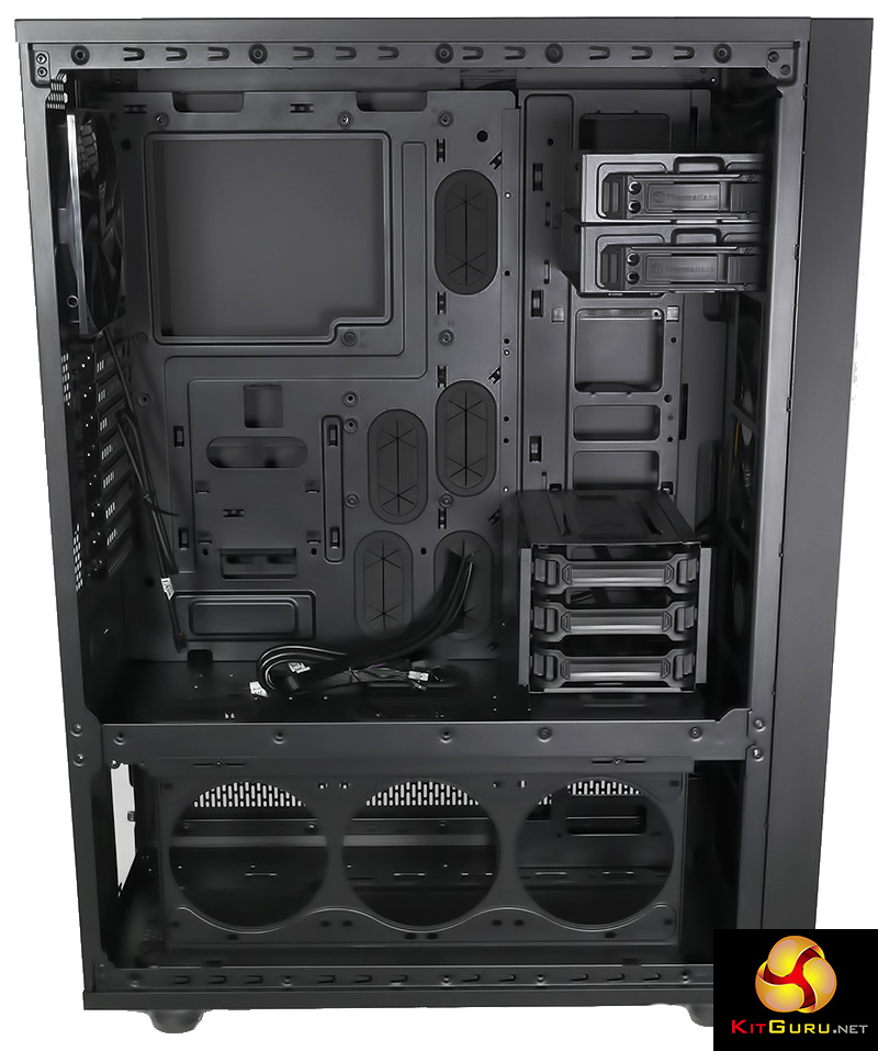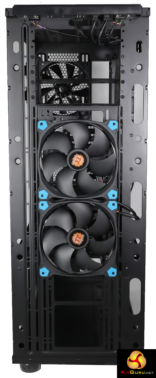 As you will see in our video you can install the power supply either in the floor of the main compartment or down in the pedestal. Installing cooling is a slightly more tricky decision. On the face of it you can install radiators, reservoirs and pumps galore but the details about mounting points make this more awkward than it first appears. You can certainly install an All In One such as the Thermaltake Water 3.0 Ultimate however that leaves you a lot of empty space inside the case.