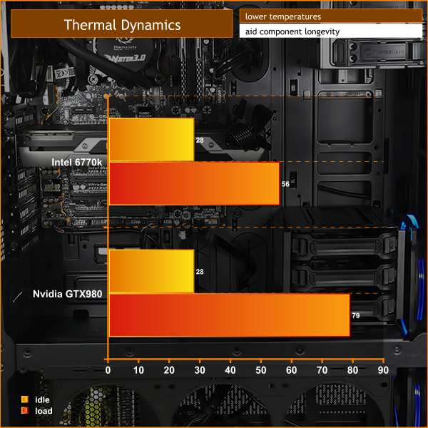 To put this case through its cooling paces we will be using a test system consisting of an Intel Core i7-6700K, GTX 980 and an SSD. This system allows us to produce a substantial amount of heat and effectively test the Thermaltake Core X71‘s cooling capabilities.