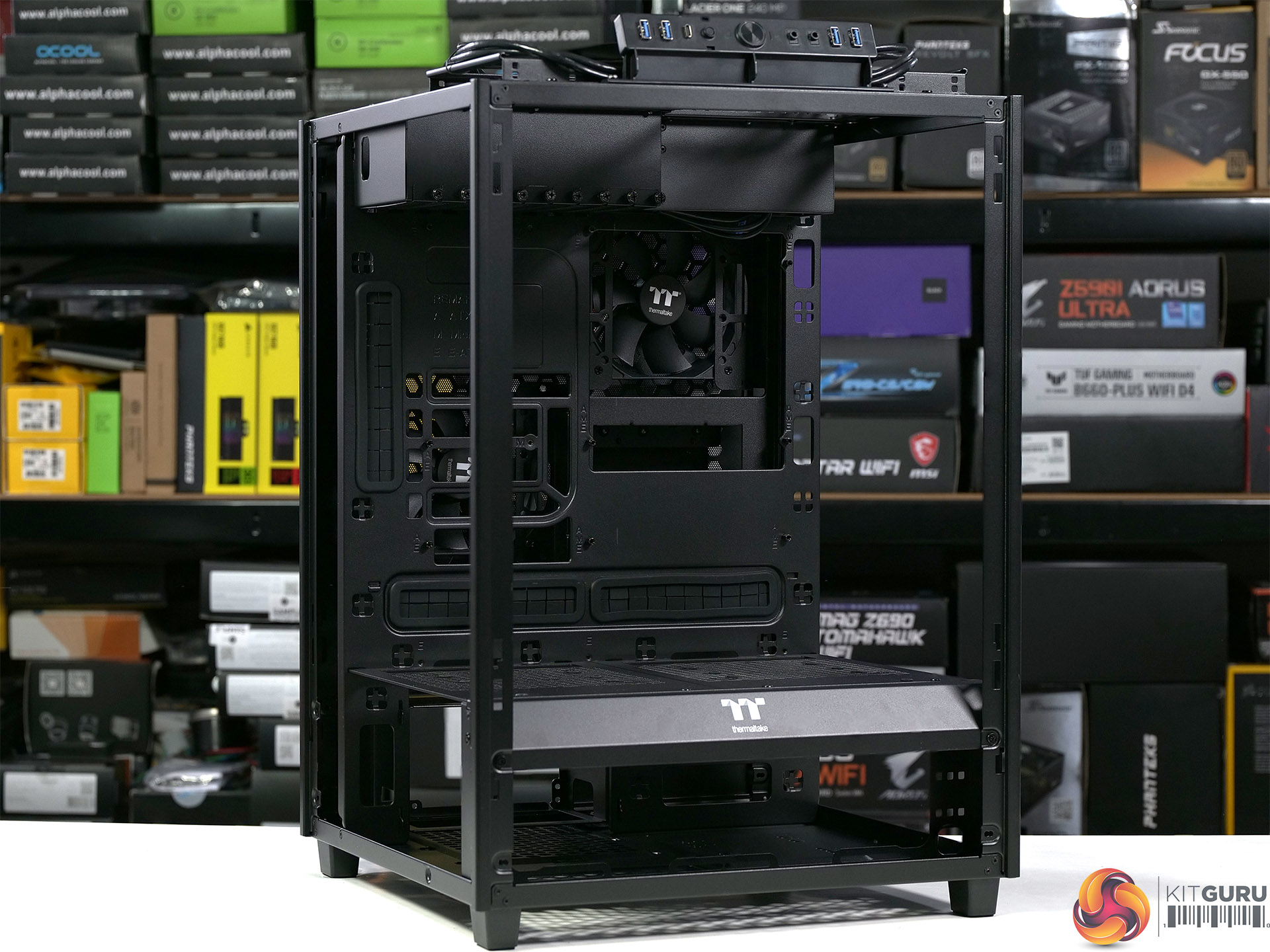You would think the top fan mounts would be used for exhaust as hot air rises, however Thermaltake makes it clear the top, bottom, front and left are for intake while the right side and rear are for exhaust. To our eyes this is another way of saying ‘cram in as much air as possible and hope it reaches the correct places'.
