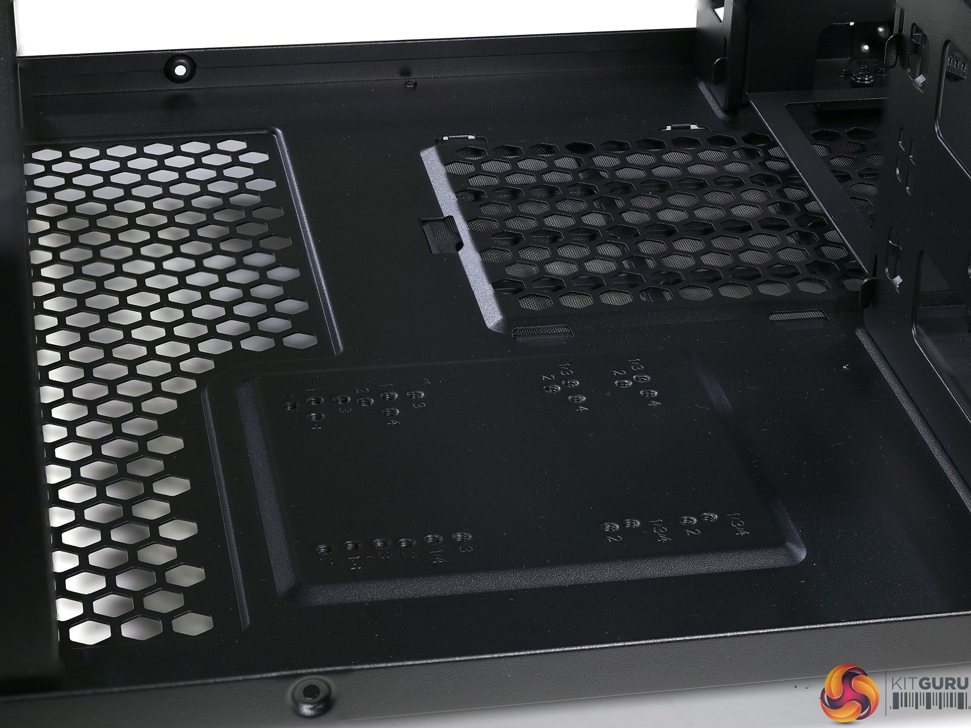 You can draw cooling air in through the vented sections in the floor of the case and there are large mesh sections in the main compartment however if you pack out the case with storage drives the two compartments are effectively separated. On the other hand if you remove the internal divisions the air will logically flow upwards and then it gets a bit confused.