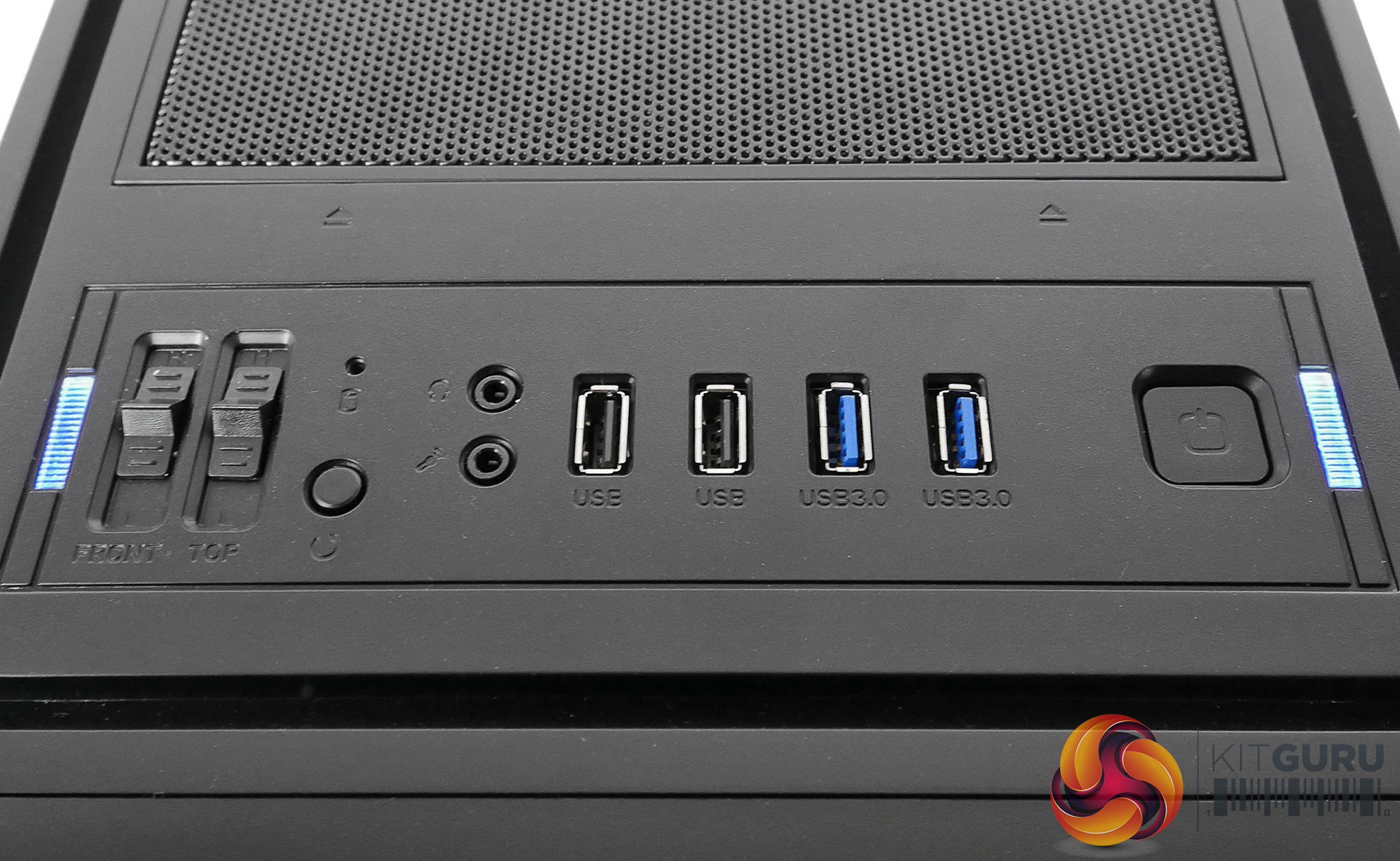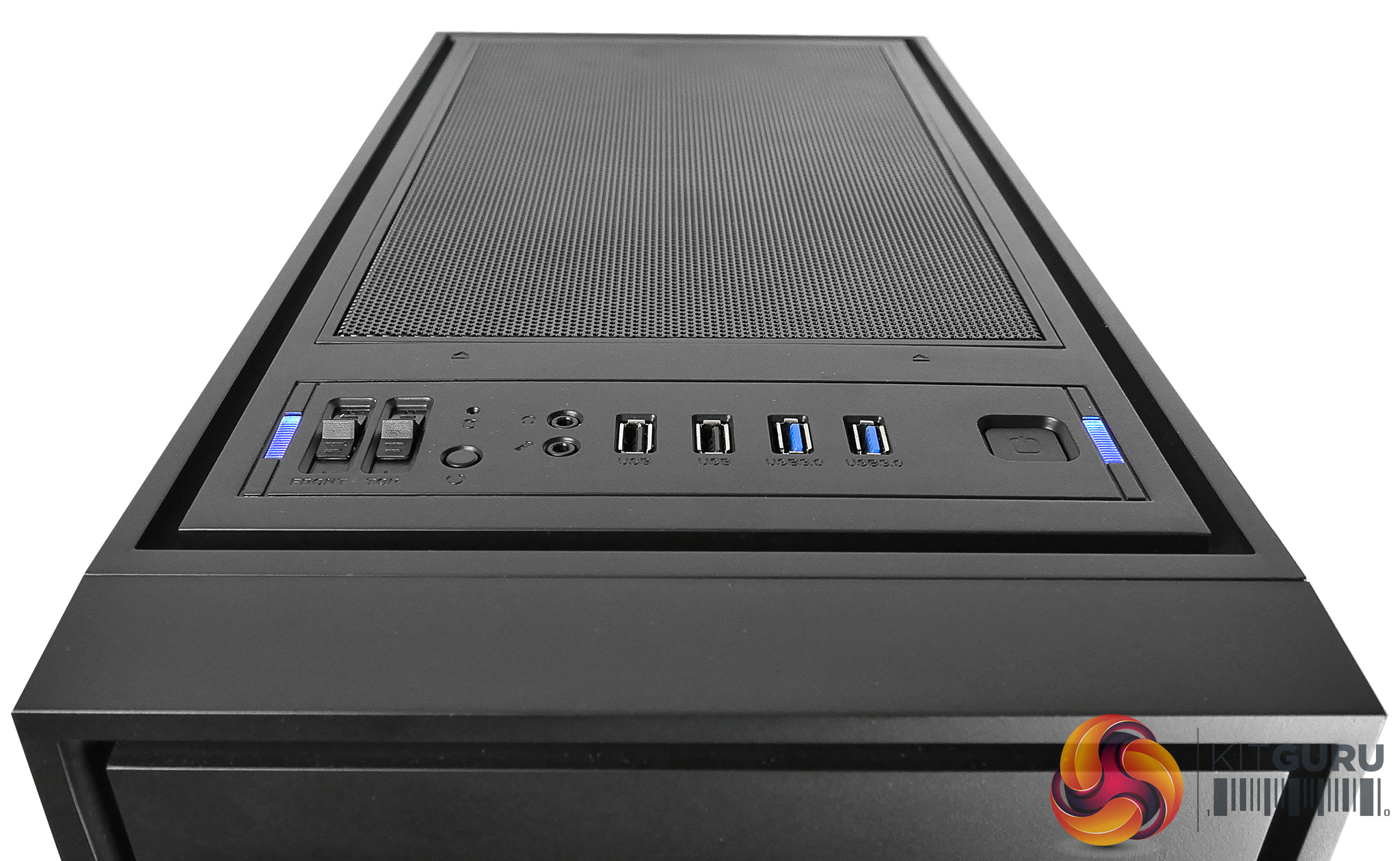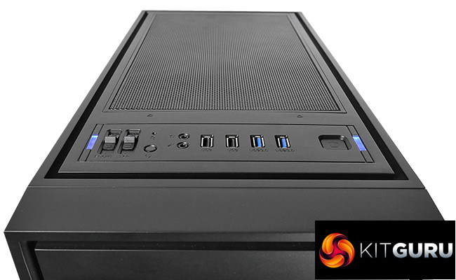 At first glance, there is no doubt that this is a very basic looking chassis. At the front of the case, the bottom half is equipped with a metal mesh, above which are the optical drive cut-outs. Along the top we also have the same mesh style with the I/O interface towards the front. This includes the fan speed controller, which offers 3 different speeds: OFF, slow and fast.