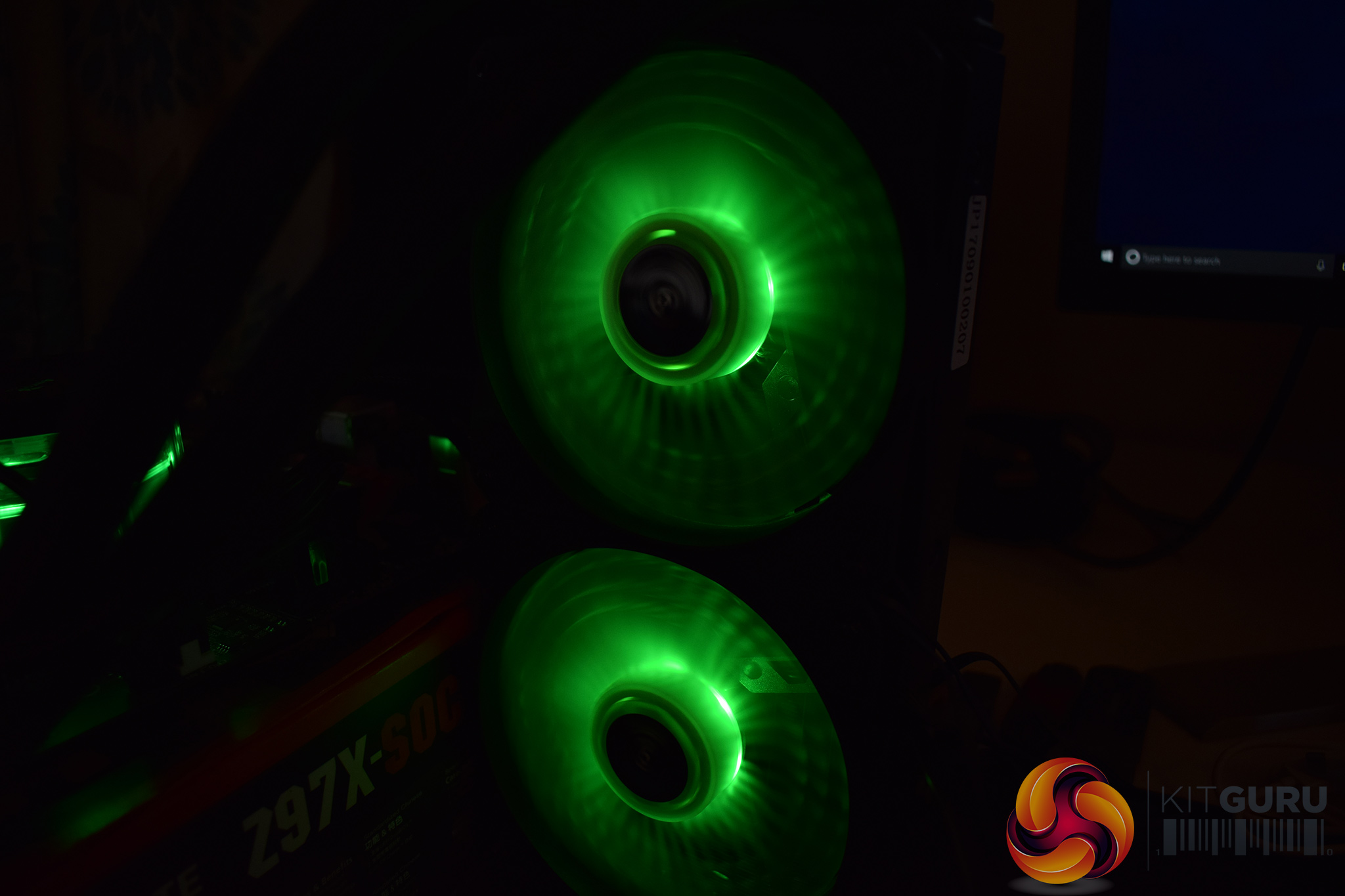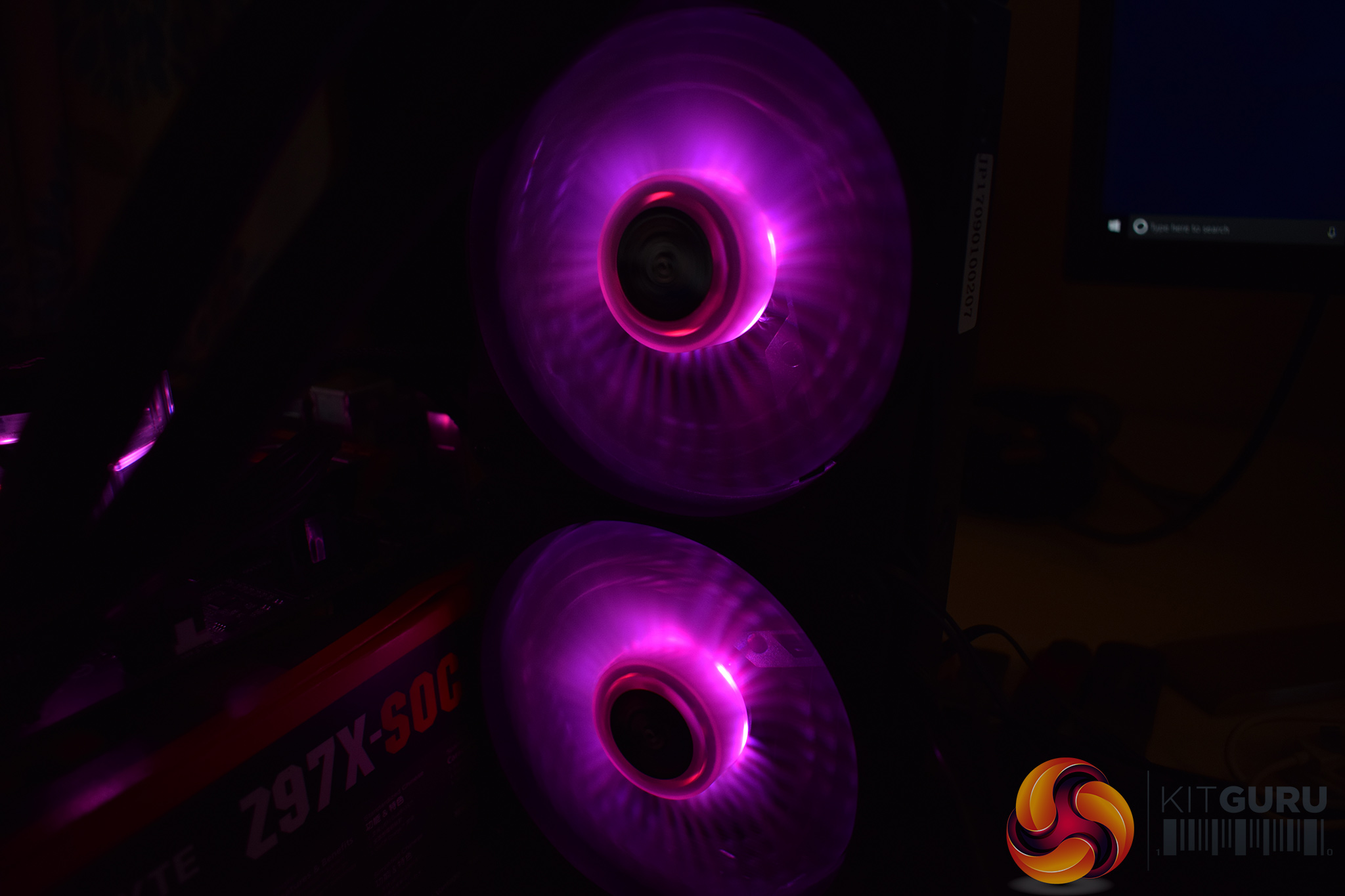 Moving onto the RGB lighting, as you can see above, with the pump and both fans lit up, the overall look is very appealing.