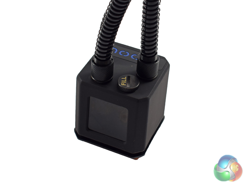 The pump itself has a fill port – useful for when you connect another component, such as a GPU block, as there is only enough coolant for the Eisbaer in its out-of-the-box configuration. There is also a small window on the pump, allowing you to check coolant levels as you re-fill.