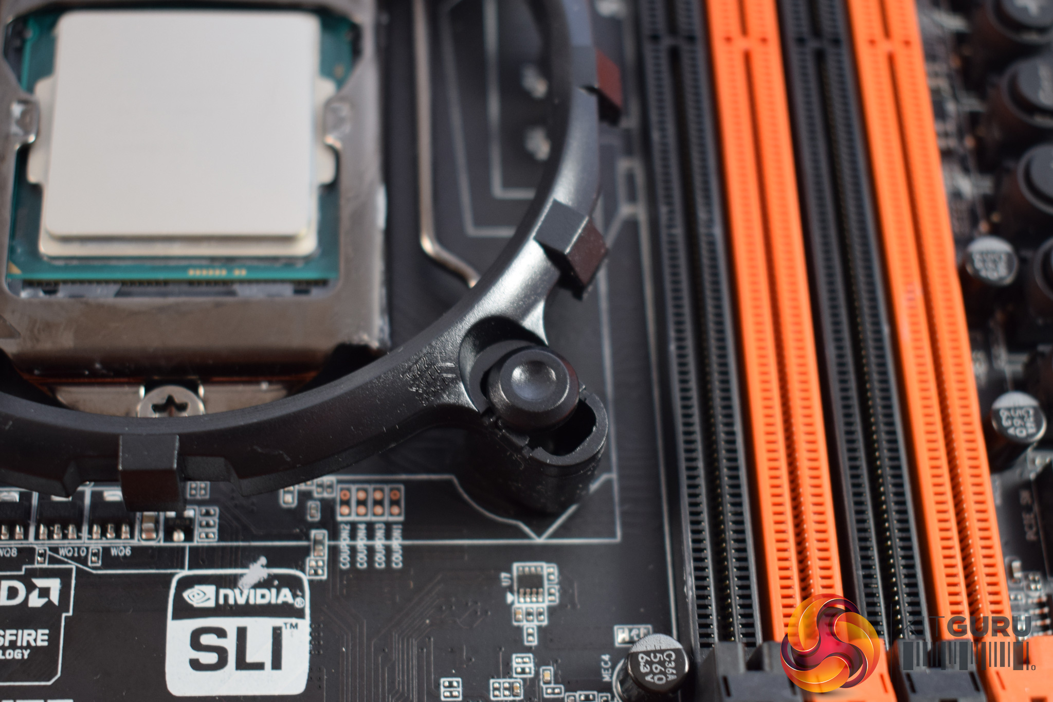 With the bracket now secure, users can apply thermal paste and mount the cooler. The cooler has two small metal clips on either side, pre-installed, and these just need to be locked to the bracket's mounting points.