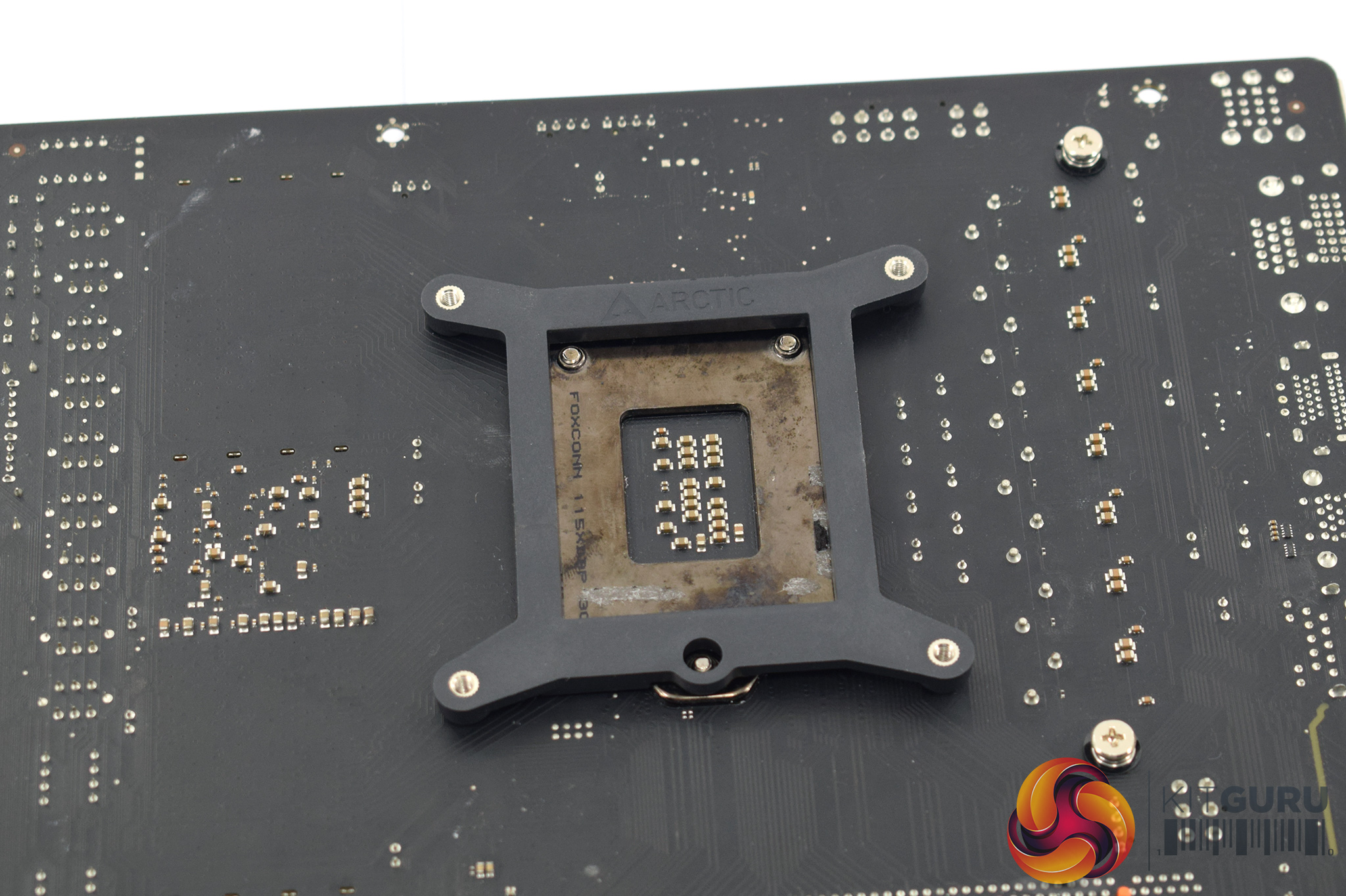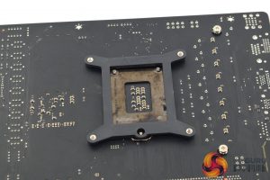 After that, as we are testing with the LGA 1150 socket, we need to place our backplate behind the CPU socket area.