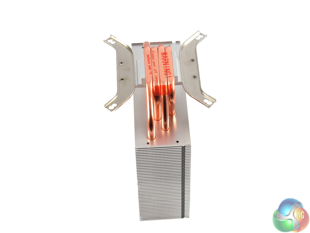 Next, the mounting brackets need to be screwed to the base of the cooler. Flip the heatsink upside-down and align the brackets with the screw holes on the base of the cooler. Then, simply screw each bracket in place – the smallest four screws are the ones you want.