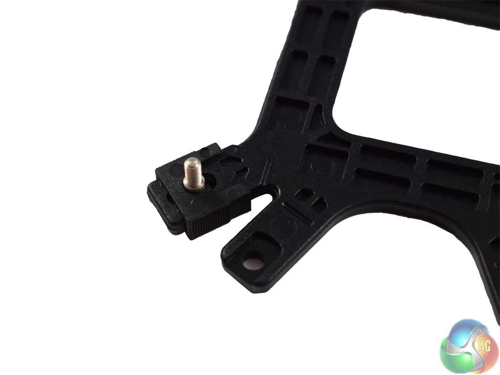 As we are using a Z97 motherboard – LGA 1150 socket – we need to use a backplate. Before installing it, make sure the backplate screws are in the central position – it can be aligned in 3 places depending on the motherboard socket, and we want it to be in the middle. Just slide it up or down as need be.