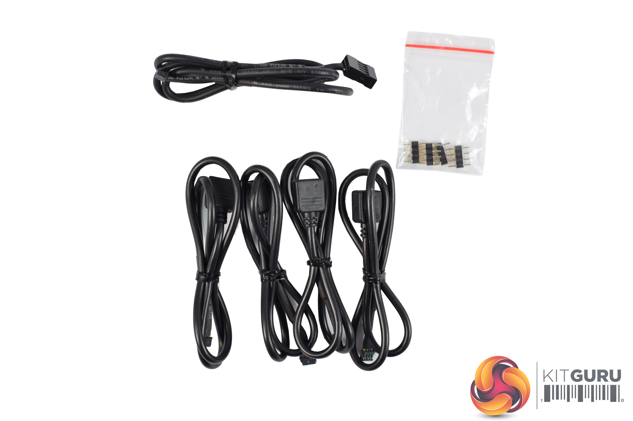 All the cables you need are included in the box: 4x fan cables, 1x internal USB cable and 4x RGB pin connectors.