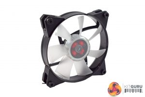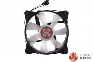 On the underside of each fan, the most interesting thing is a small switch placed directly behind the fan's central hub. This switch allows you to change between red-only, blue-only and RGB LED modes – so if you just want to set your fans to red or blue, you can do that via the small switch instead of using any software.