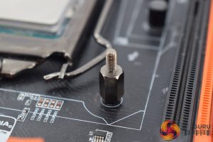 First, the backplate must be prepared – for our Z97 motherboard, the screws should be in the inner-most position.