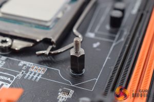 First, the backplate must be prepared – for our Z97 motherboard, the screws should be in the inner-most position.