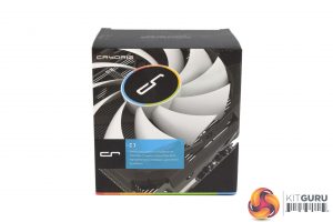The Cryorig C7 ships in a pretty standard box, and a product photo dominates the front.