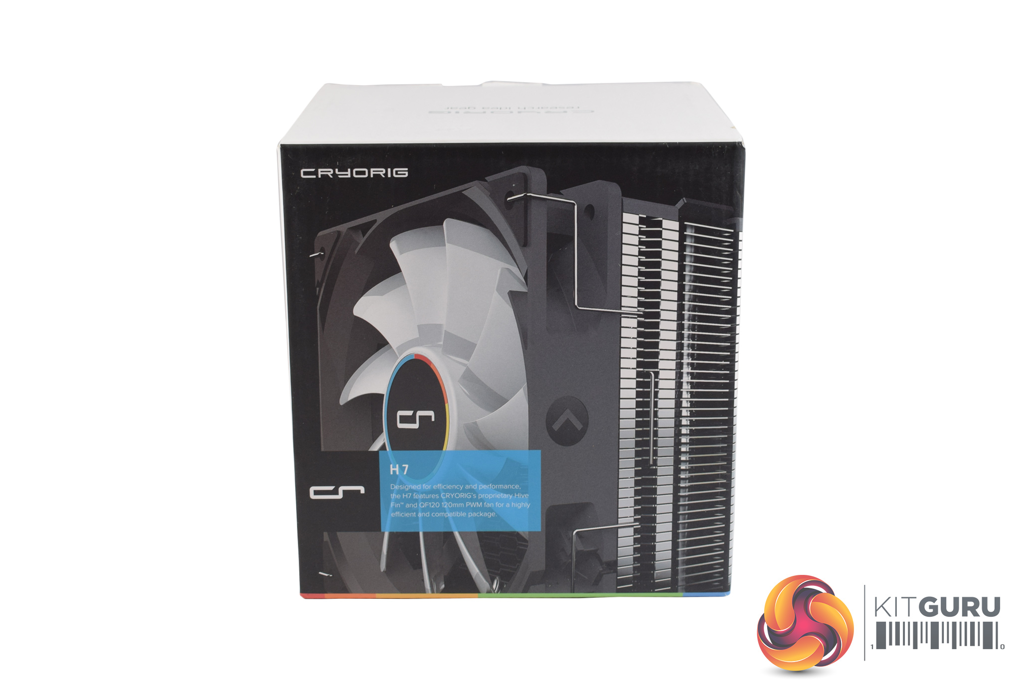 The Cryorig H7 ships in a stylish black box, with a large photo of the air cooler being visible from the front.