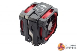The cooler itself is a very chunky unit, measuring 150.4 mm x 170.0 mm x 129.8 mm (DxHxW) with both fans attached – which, incidentally, is how it comes out-of-the-box. The fans do attach using two clips on either side, though, so it is easy to remove one or both units.