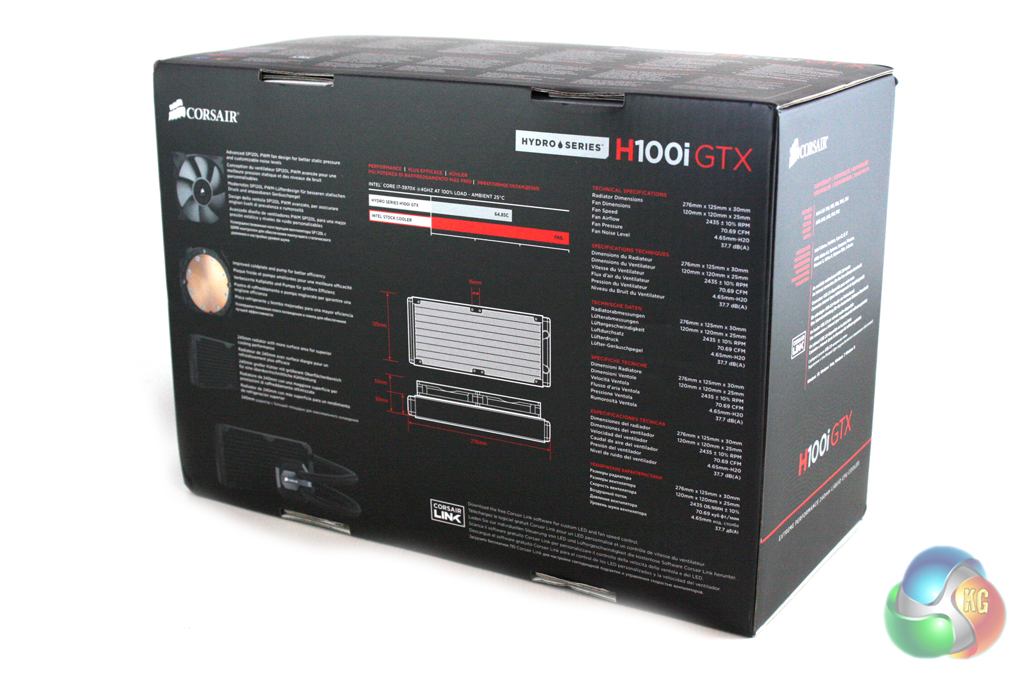 The Corsair Hydro H100i GTX is supplied in very familiar looking packaging, boasting a black and red livery. The front of the box features a large image of the cooler to give us an idea ofΒ what is inside.