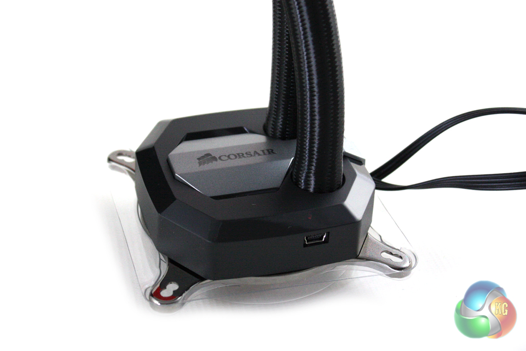 There is a mini-USB connector in the side of the CPU block which allows us to connect the cooler to our motherboard using a USB header. This enables the Corsair Link functionality of the cooler. We will go through this in more detail later on in the review. There are two fan sockets protruding from the block which let you connect the two fans to the cooler to enable Corsair Link functionality. It is worth noting that these would require fan splitters if you plan to add a pair of extra fans in a push-pull configuration.