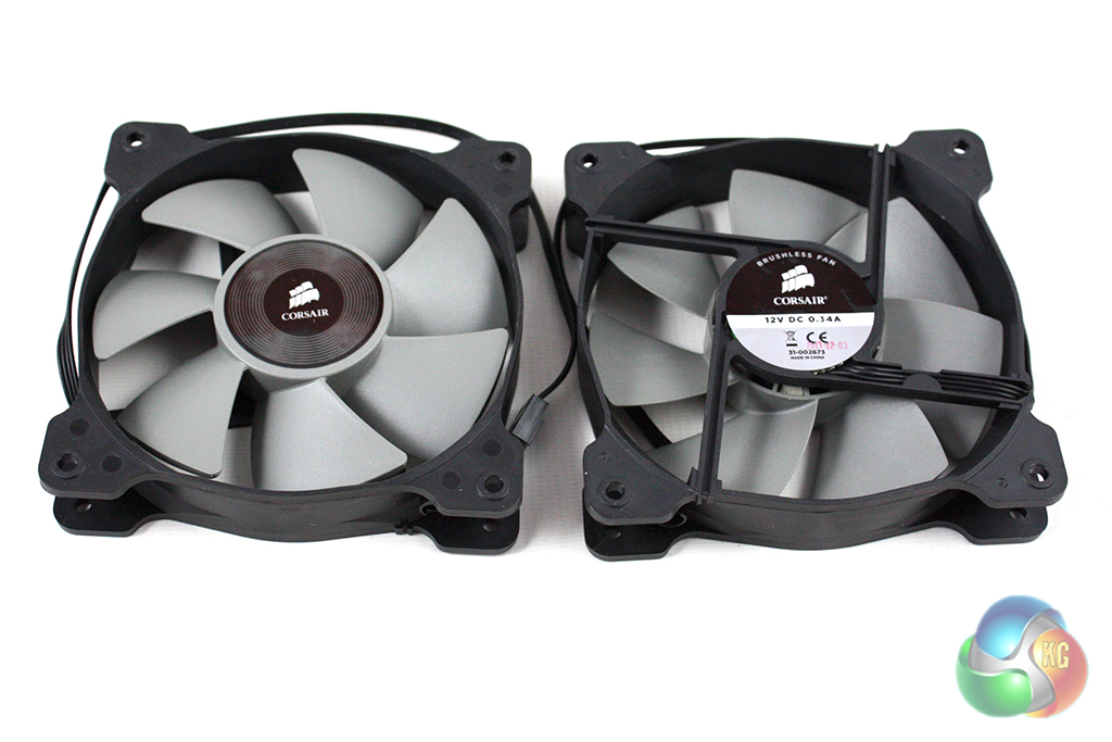They share the same basic design with Corsair SP120 Quiet and Performance edition fans although they don't offer the same interchangeable rings. The SP120L fans are capable of spinning between 800 and 2700 RPM, generating airflow of 73 CFM, while emitting noise @ 37.7 dBa.