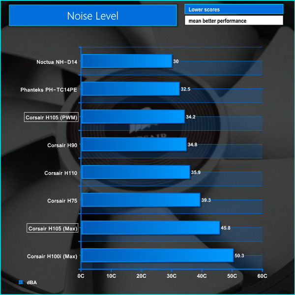 In our noise level tests we switched off all the case fans and replaced the AMD Radeon HD 7950 graphics card with a HD 5550 passive model so were just taking into account the noise generated by the cooler fans themselves.