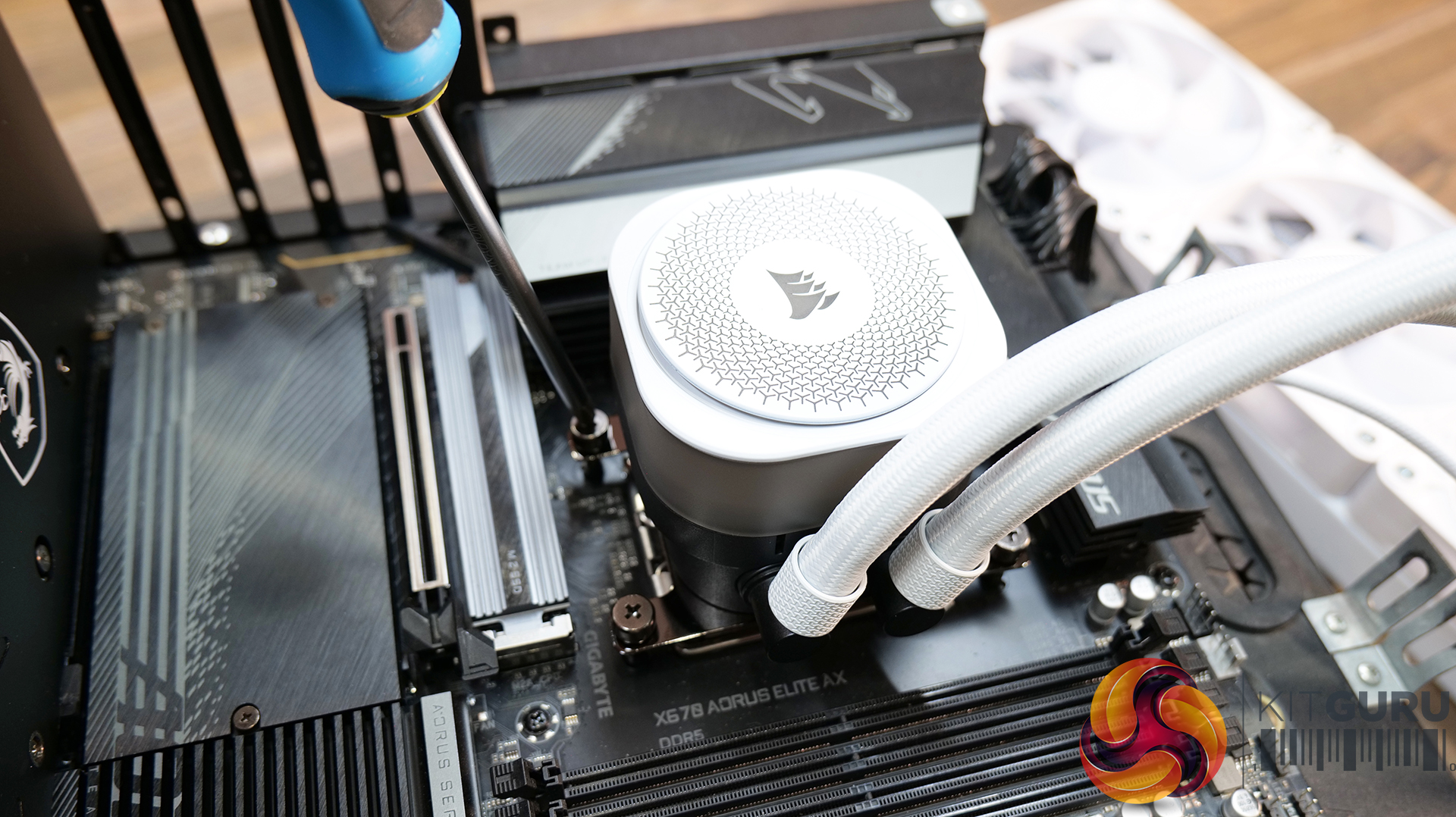Installing the Corsair iCUE Link Titan RX is quite easy but there are several cables to connect to the iCUE Link hub which increases the difficulty and time to complete the process. Here we show the installation on our test bench system which is AM5-based, the installation process on other platforms is very similar and equally time-consuming.