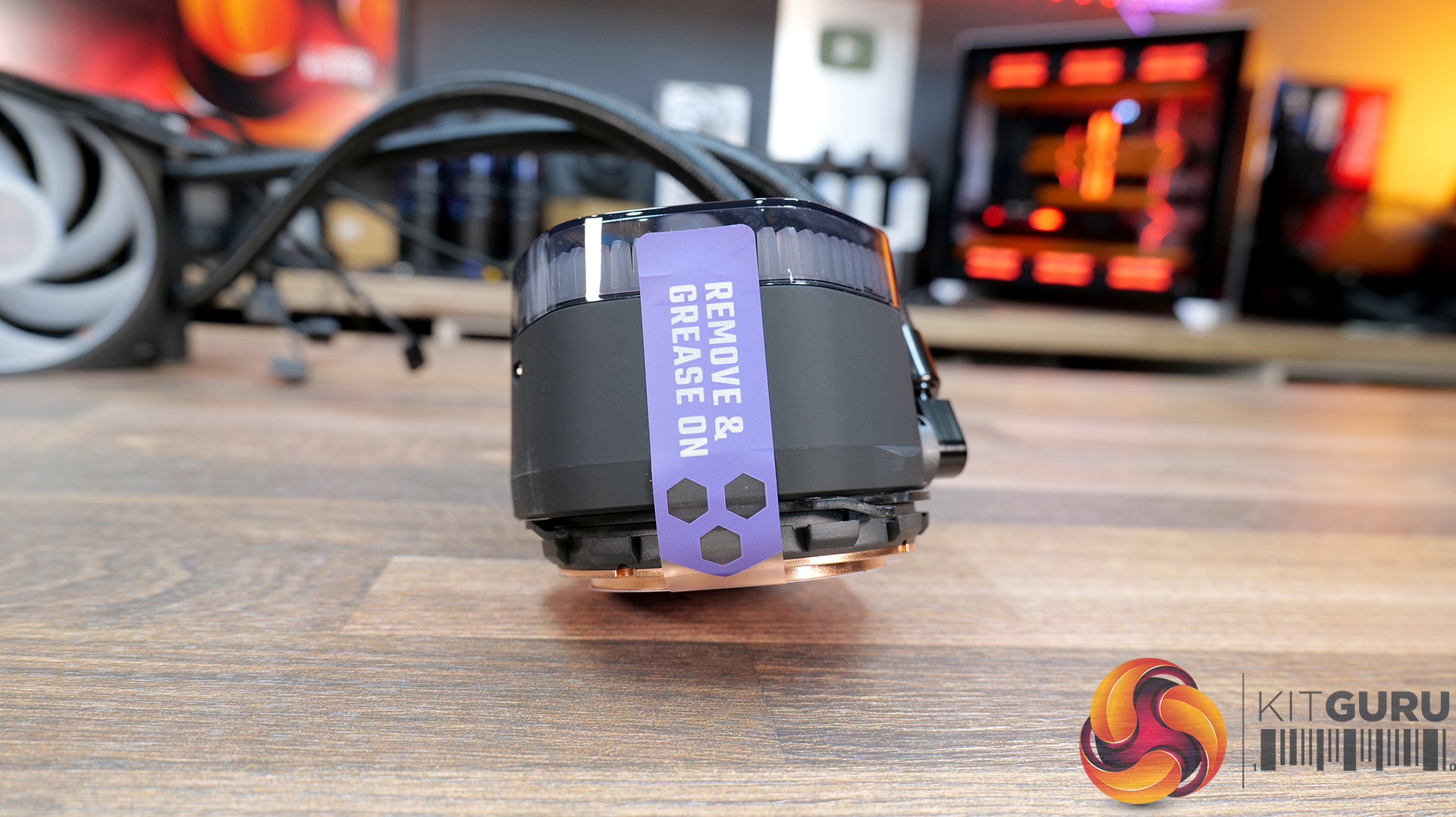 There are several labels and protective stickers on the side and base of the CPU block, the side label suggests to “remove and grease on” which implies that the user needs to apply thermal compound. However I don’t like the term “grease on” as it is misleading as thermal compound isn’t grease. The micro-skived copper cold plate has a template sticker for applying the thermal compound.