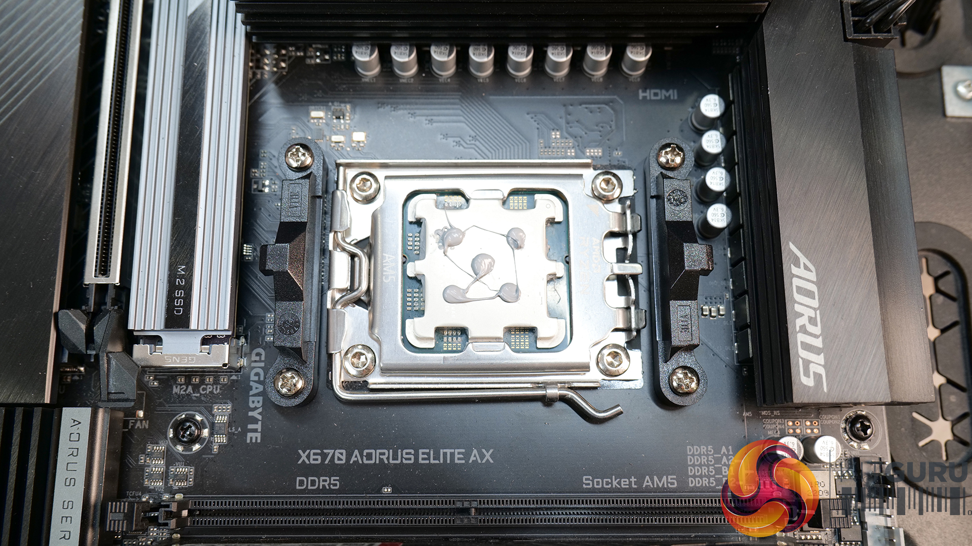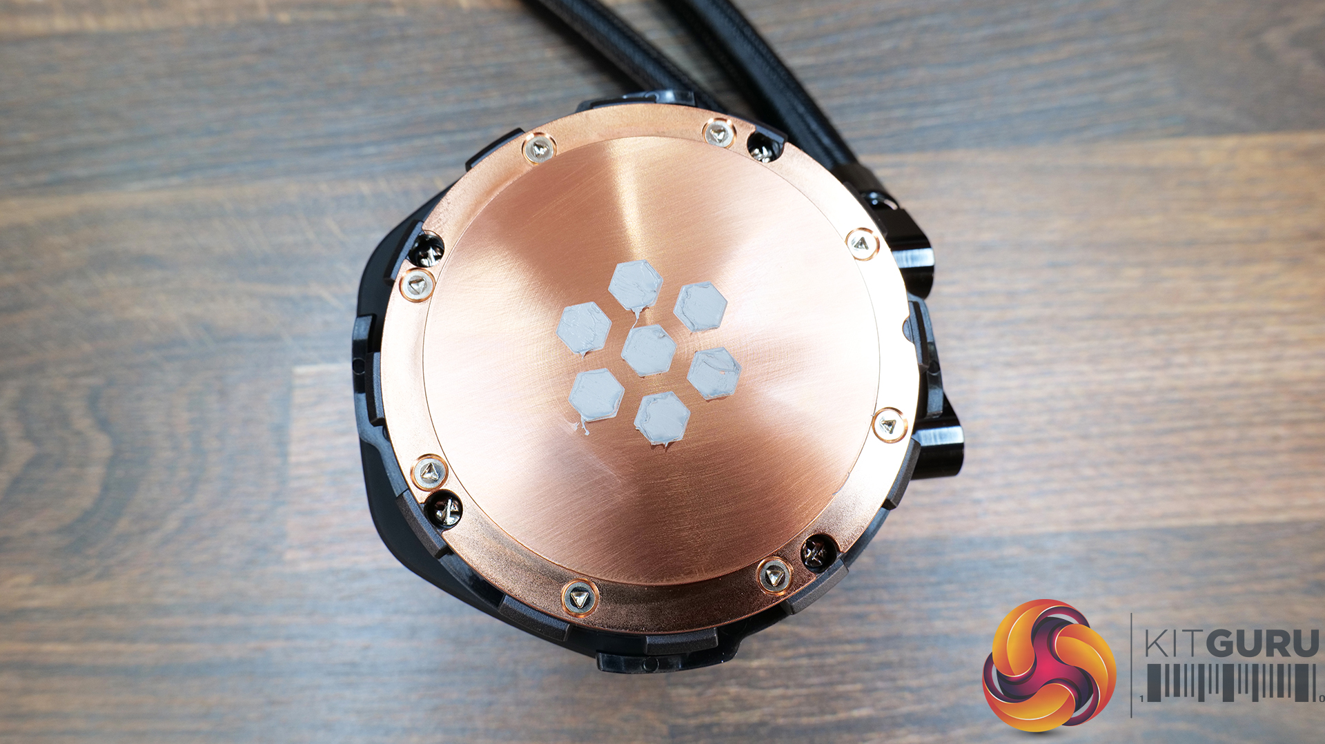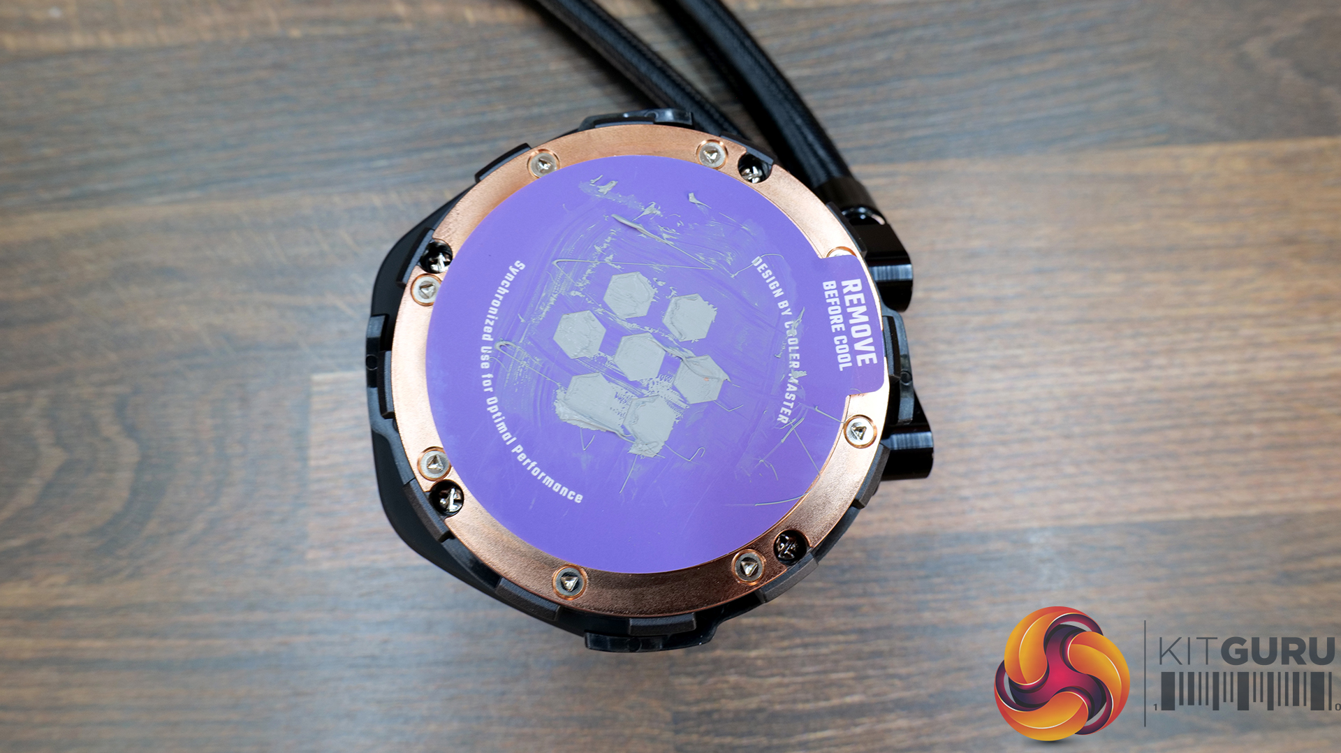 However you might want to use the Cooler Master method with the template sticker, if so apply some of the included Cooler Master CryoFuze compound over the sticker and spread evenly then remove the sticker before installing the CPU block to the socket.
