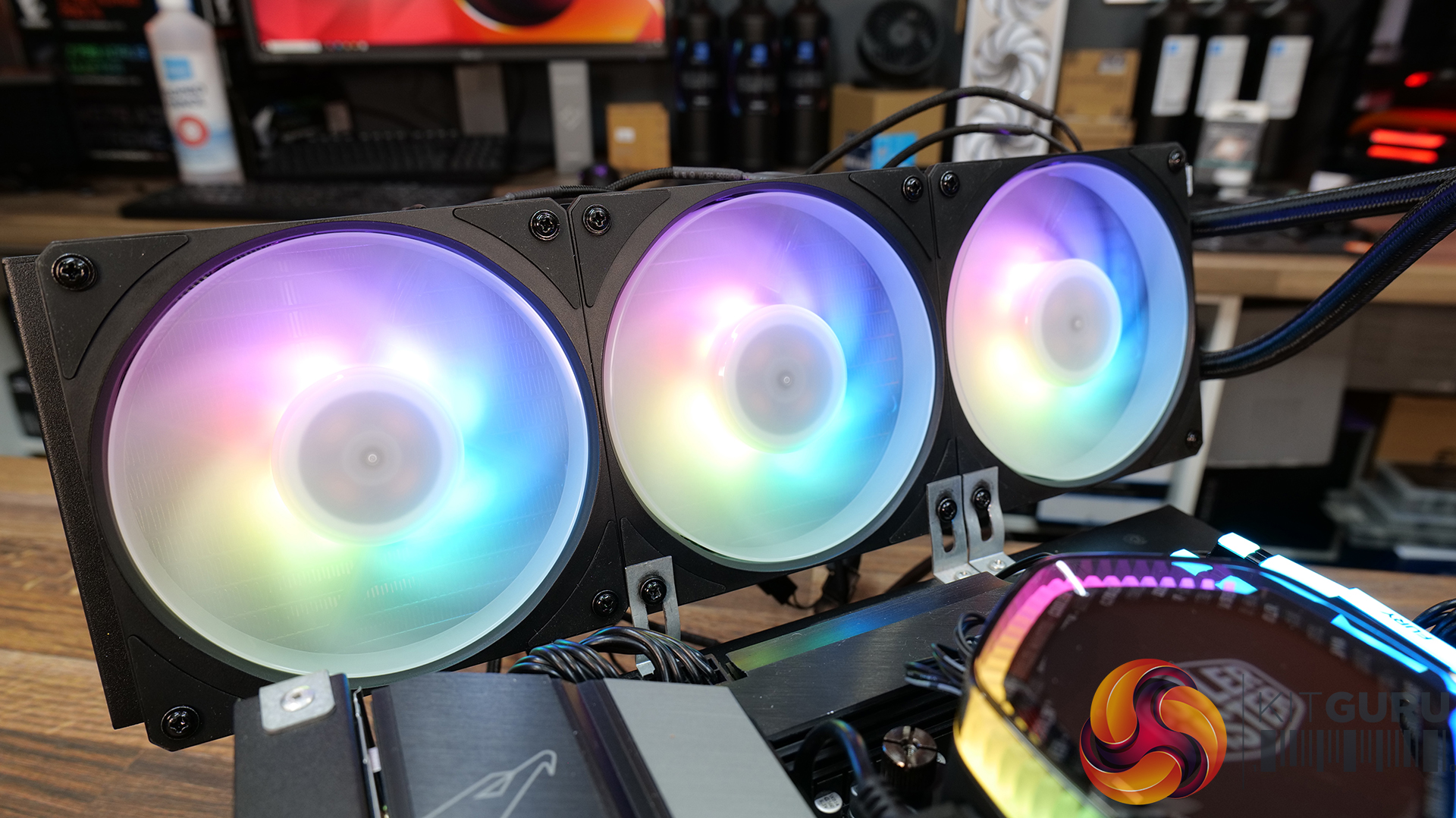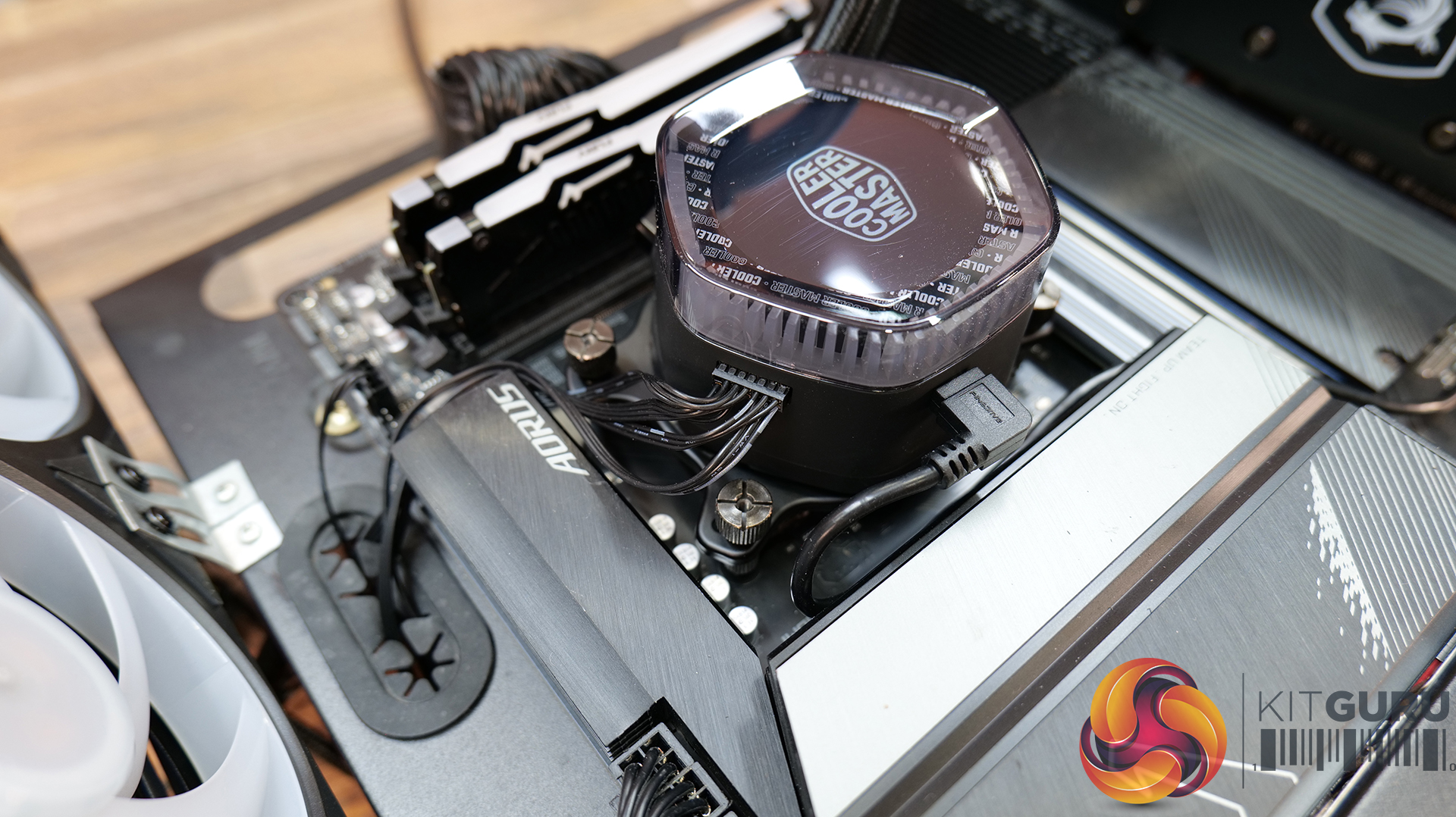 Cooler Master pre-installs the fans to the radiator so if you are running the radiator in the orientation that suits the factory fan position then time is saved by not needing to change or install the fans. But it might be a good idea at this point to connect the two cables to the CPU block.
