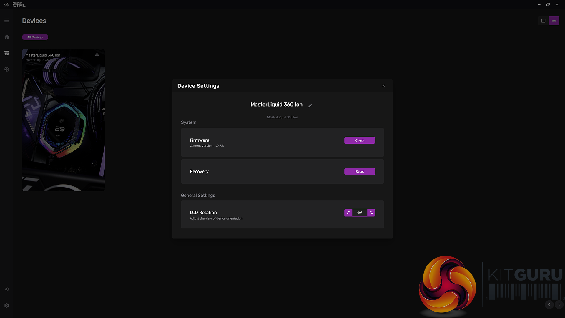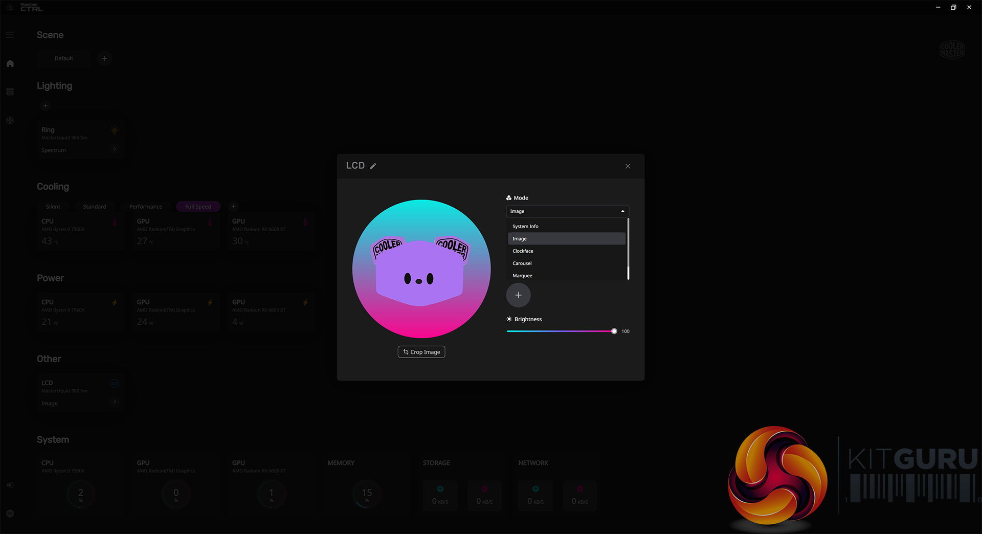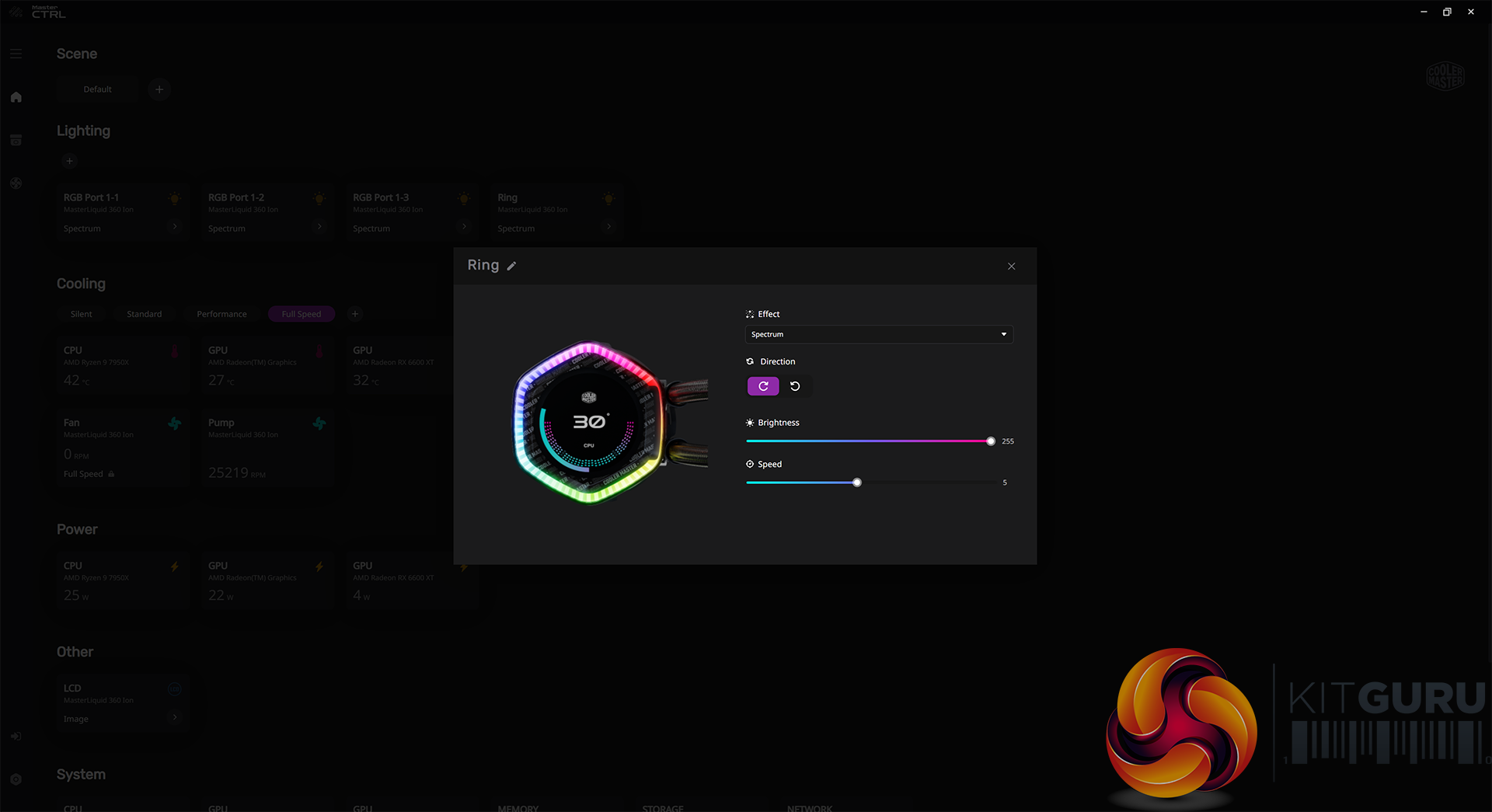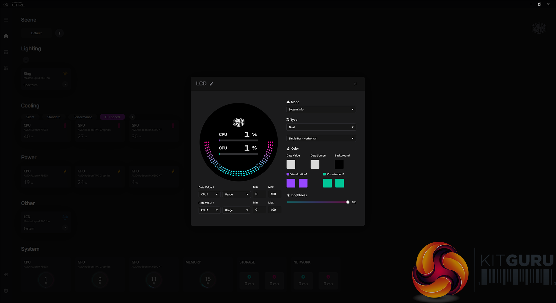 Inside the Cooler Master MasterCTRL software, you can adjust the settings of the cooler such as RGB lighting effects, what's displayed on the LCD and even the rotation of the screen. Other system information such as system temperatures, CPU/GPU load and other useful stuff can be displayed on the screen. It's easy to download and use and it seems to be quite stable, unlike some other RGB/hardware control software that can be quite fussy at times.