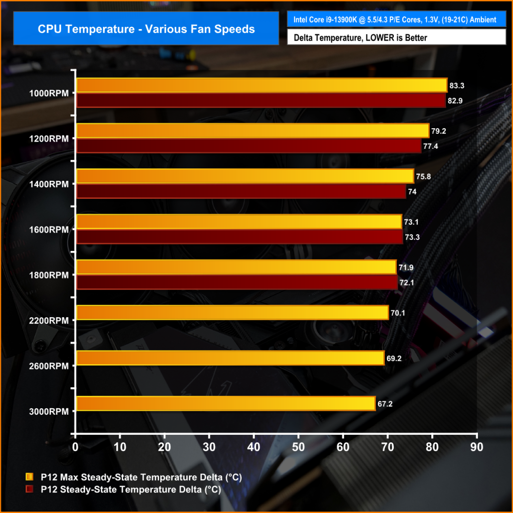 As the P12 Max fan speed increases the CPU temperature continues to drop so the extra RPM is useful here but obviously at the cost of increased noise.