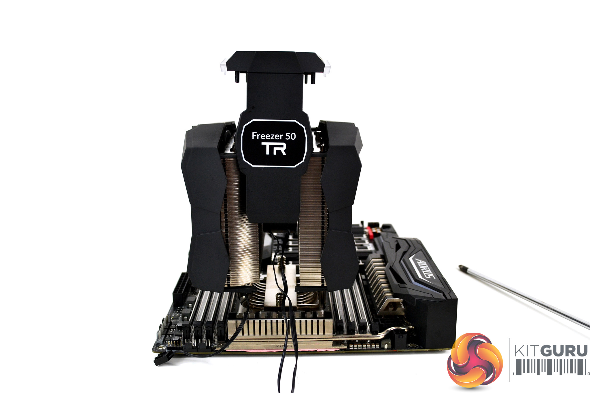 All was going well with installation until it came to fit our RAM. It instantly became obvious there was a problem with clearance to the G.SKILL Trident Z RGB memory DIMMs and the Freezer 50 TR front fan/rear plastic shroud. We managed to get the front fan in place, but it would not clip back together as intended by Arctic.