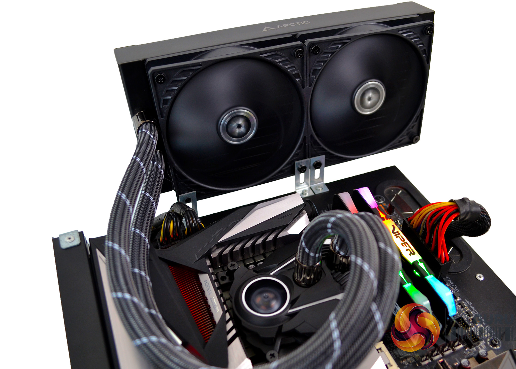 With Arctic’s integrated wiring and very straightforward cooler mounting system, the whole installation process takes less than 10 minutes on our test bench. Installing the radiator in the case will obviously take a little longer. However, the overall installation is quick and simple.
