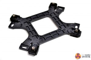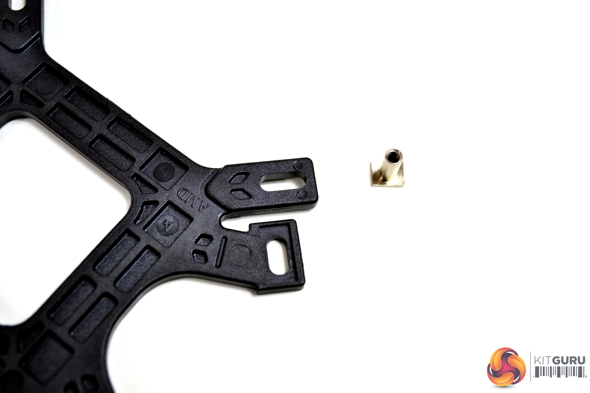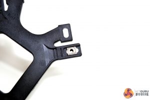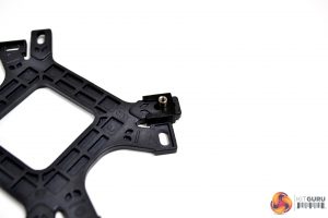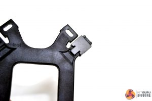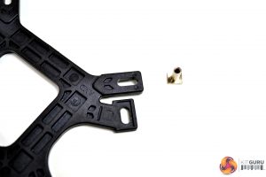 The retention bracket has a series of notches which represent the positioning of the nuts, depending on which Intel platform you are installing on. Sliding the clip to the correct notch, will lock it in place. These plastic clips are a great solution to stop the problem of the mounting nuts falling out during installation.