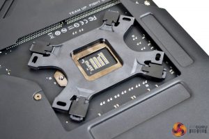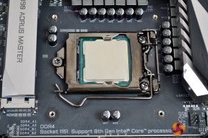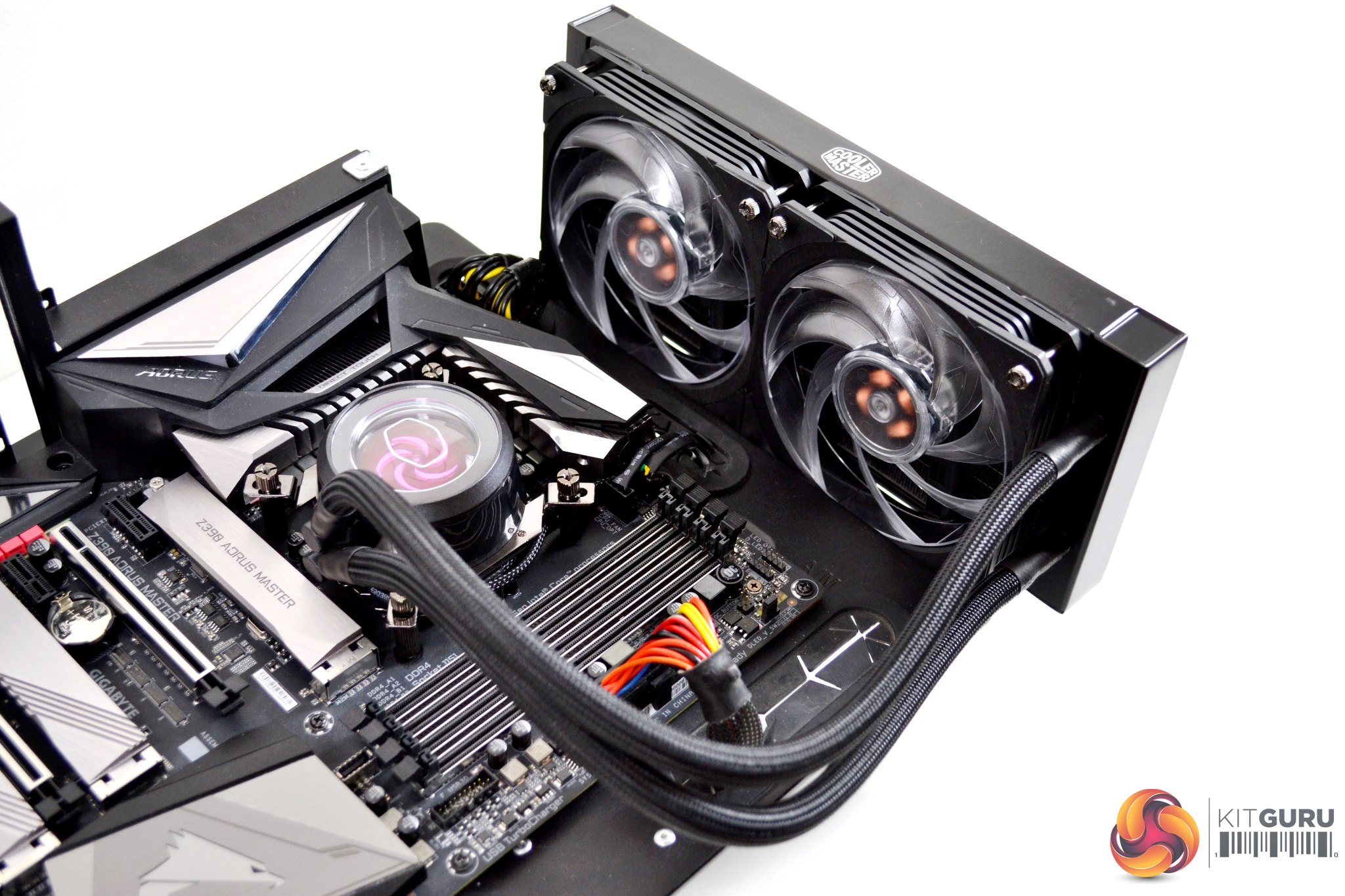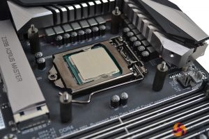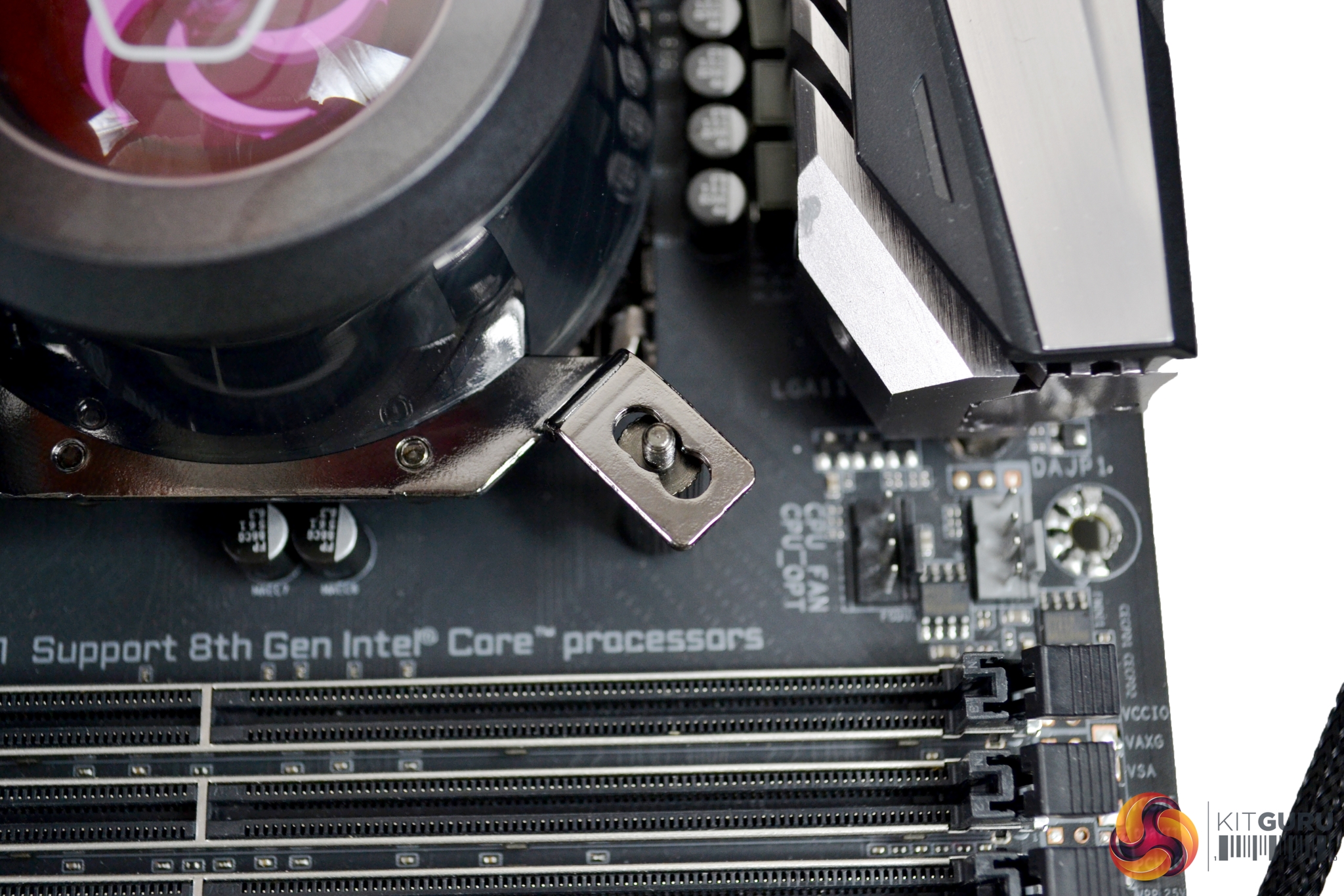 It is worth noting that motherboards which have a plate covering the back, such as our Gigabyte Z390 Aorus Master, may conflict with the Cooler Master retention bracket. As can be seen in the above image, ours is so close, it is touching.