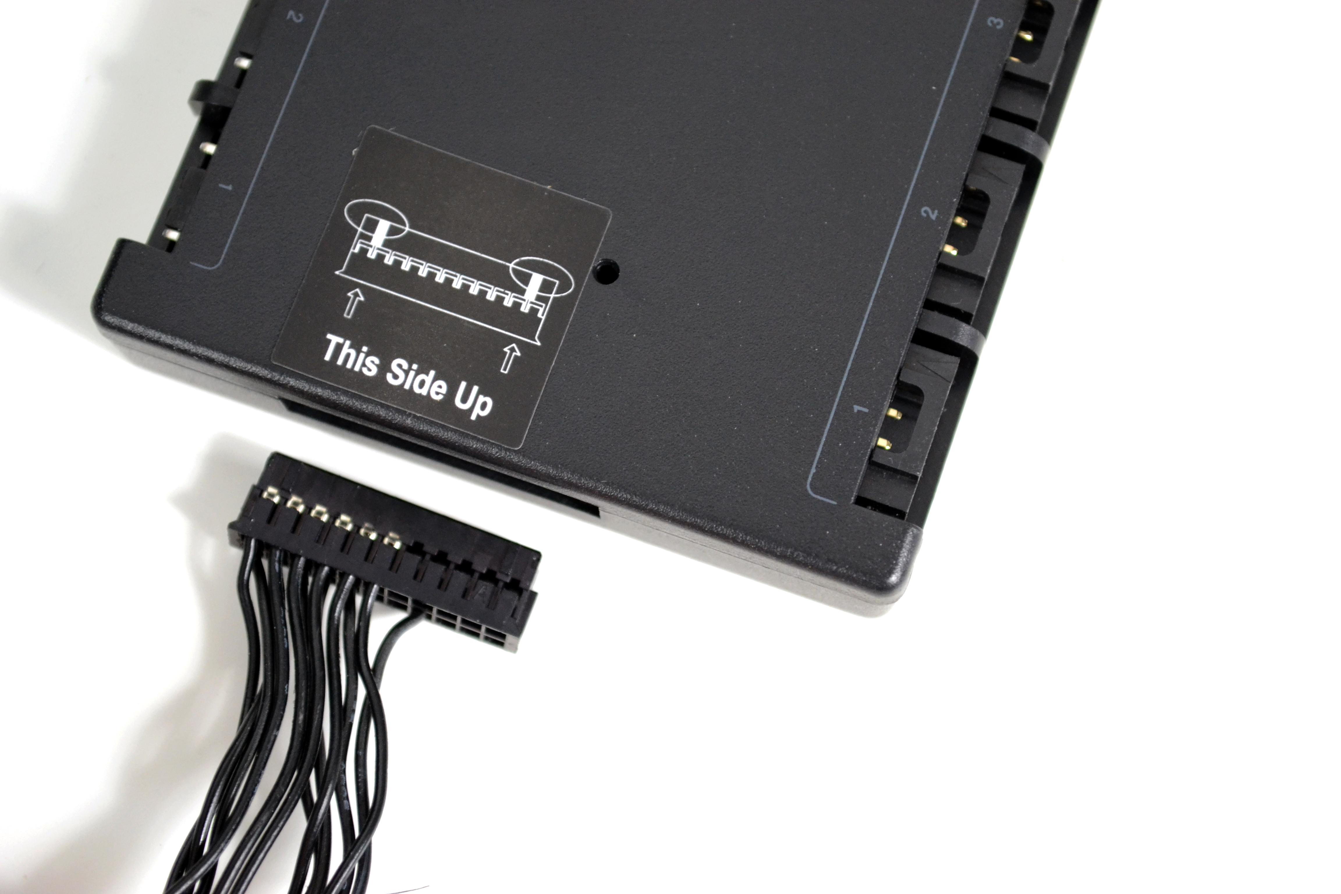The 3-pin RGB fan cables and PWM control cables are then connected on opposite sides of the Commander Core RGB unit for full RGB and speed control starting from port number one.