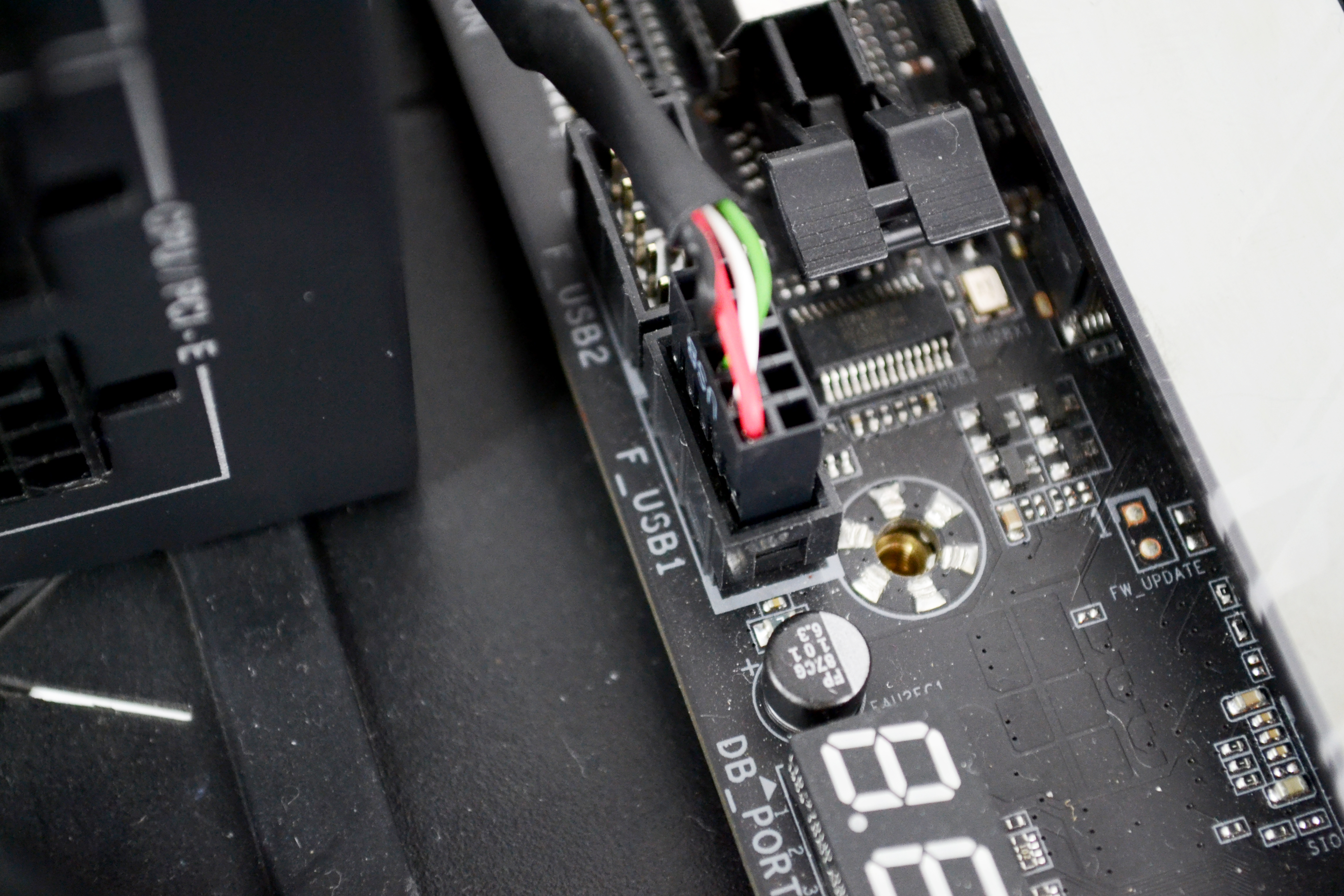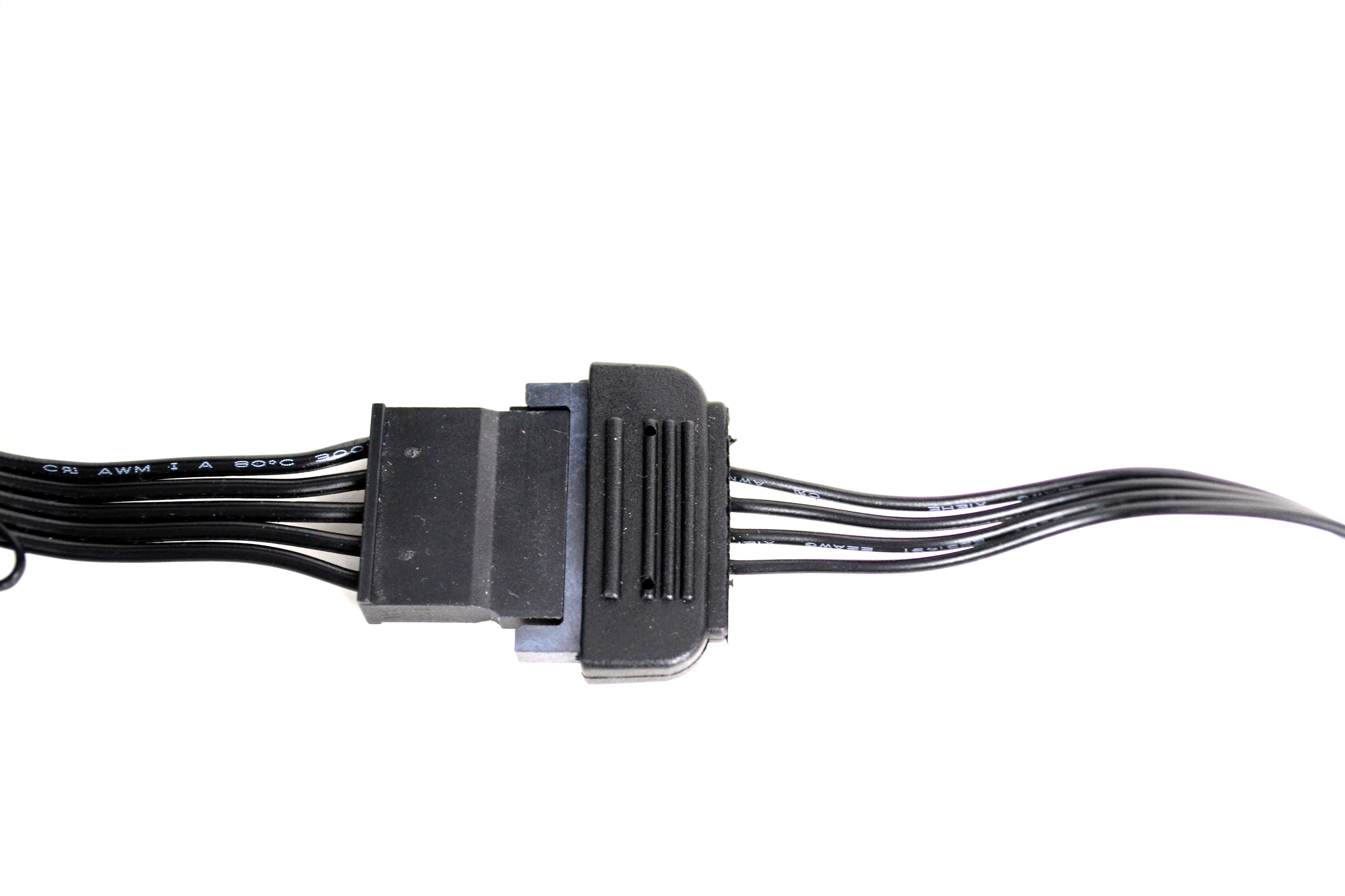 Next, the power cable from the Commander Core RGB controller must be connected to a spare SATA power connector from the PC’s main power supply, then the Commander Core USB cable is connected to a spare USB 2.0 header on the motherboard.