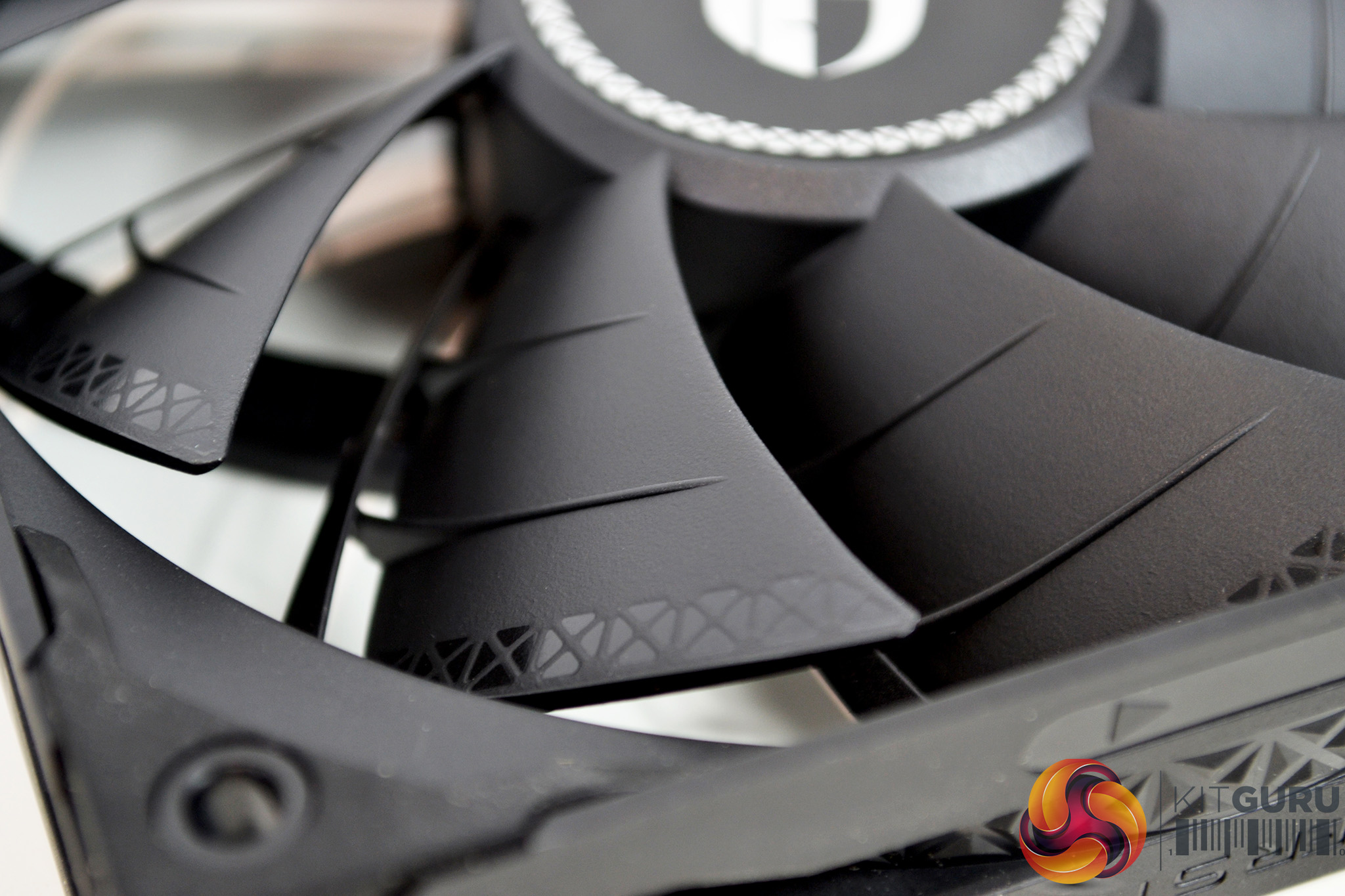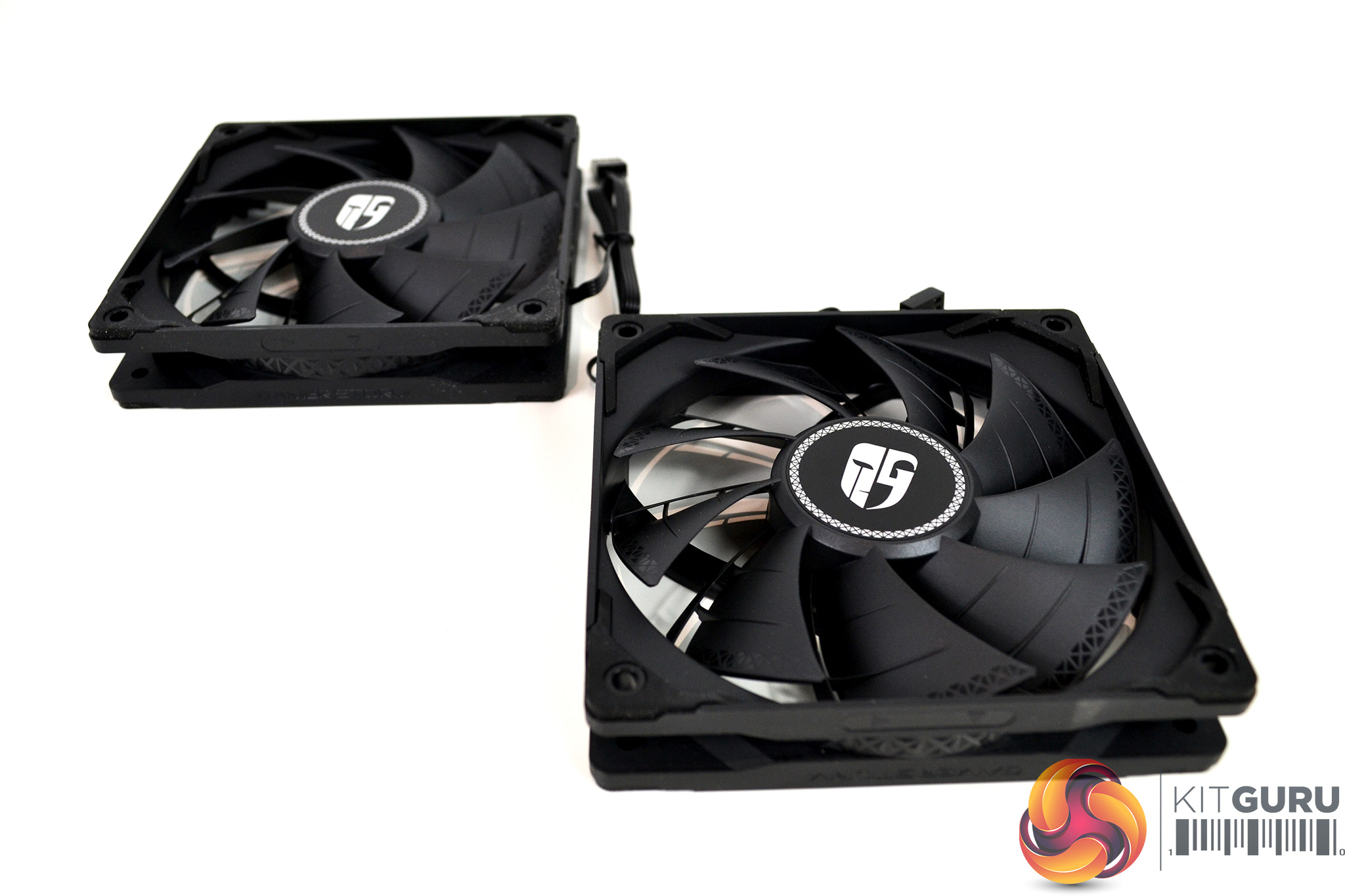 A closer inspection of the included fans confirms they are the same as those that come with the Deepcool Castle 240EX and feature the same patented two-layer fan blades. The shape of the fan frame is completely square to help direct airflow over the radiator. Anti-vibration rubbers are integrated into the four corners of the fan on both sides to suppress noise created by vibration when the fan is running.