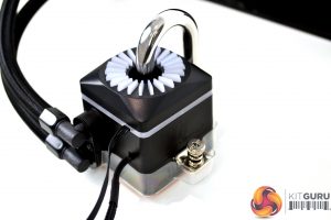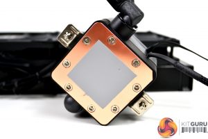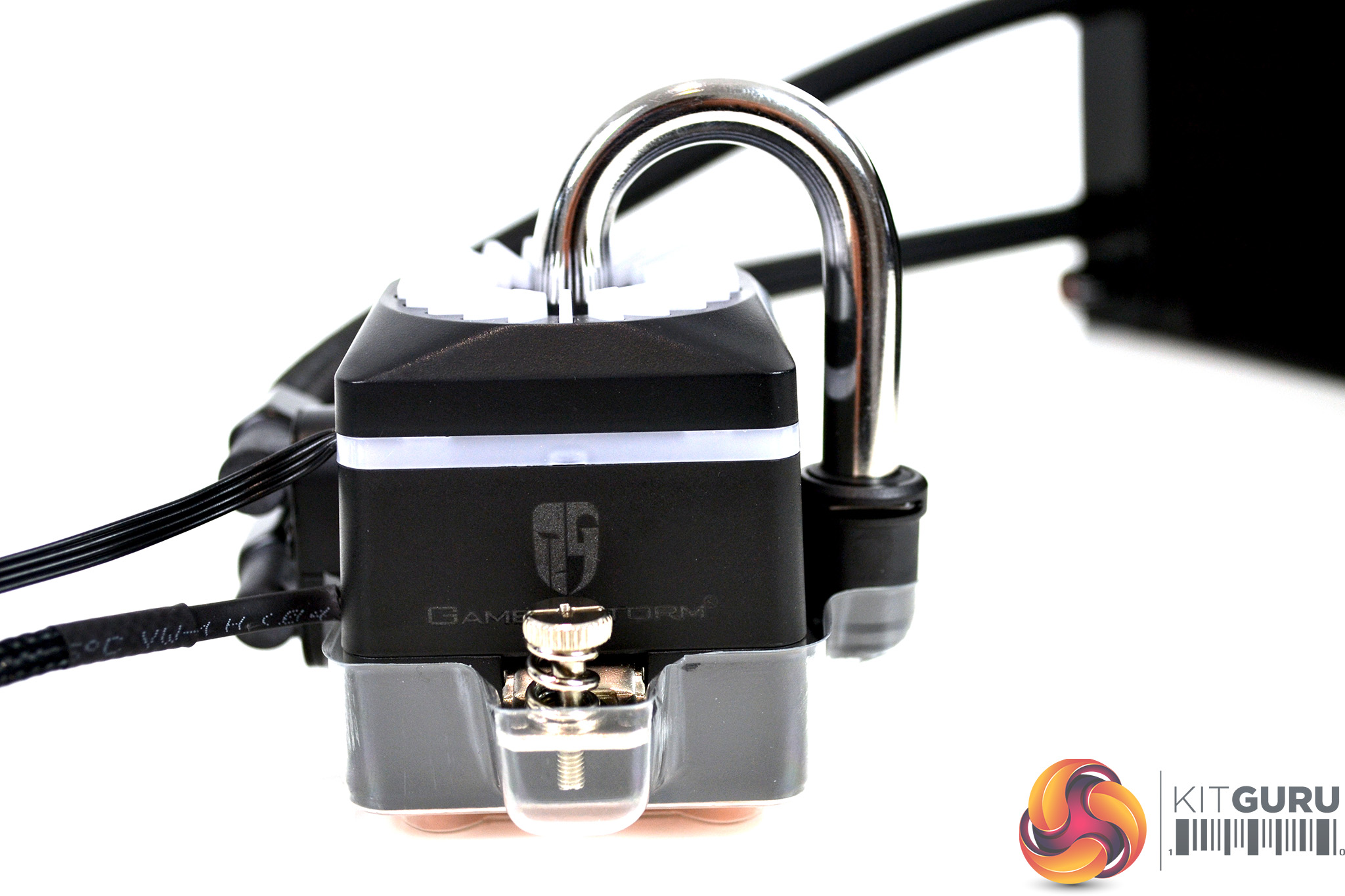 On either side of the pump body, just above the mounting brackets are subtle Game Storm logos and on the underside, there is a large, smooth, square copper thermal plate which has an even and accurately machined finish, with a pre-applied thermal compound coating.