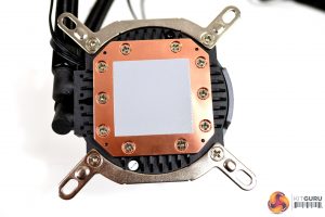 There are no spacers required to ensure the CPU block is correctly positioned, it's just a simple case of lowering the CPU block down on to the CPU heat spreader and tightening the CPU block in position using the four chrome thumbscrews. Use an X shape pattern when tightening the thumbscrews to evenly distribute mounting pressure. Final tightening can be achieved best by using a flat blade screwdriver.