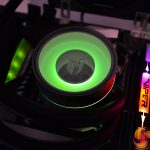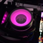 There are two options for connecting the RGB lighting. Either directly to a 3-pin 5v ARGB header on the motherboard using the adaptor cable (this is the option we chose) or via the included RGB controller. To connect the RGB controller simply plug the SATA power cable into a spare connector from the power supply and connect the pump RGB cable to the 3-pin socket on the other end of the RGB controller.
