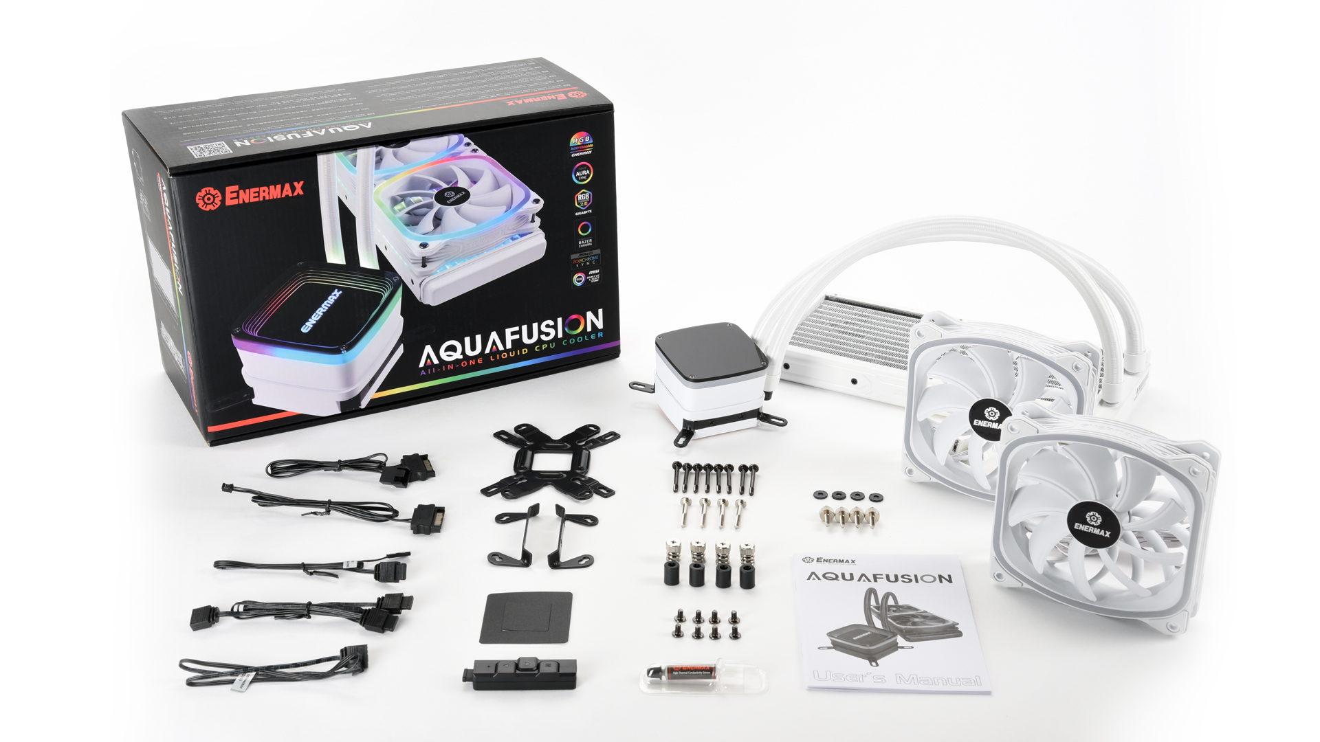 The Aquafusion White series from Enermax is a new all-in-one CPU cooler making its way to the European market. The Aquafusion White 240 includes a water block equipped with a 3D layer Aurabelt design, combined with Enermax SquA ARGB fans to provide unique lighting effect displays.