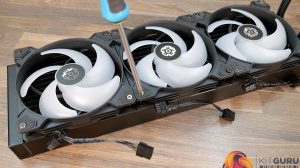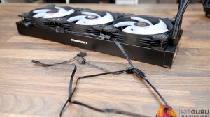 The first step of the installation is to attach the fans to the radiator using the long bright chrome screws provided. You can Install the fans either in push or pull configuration depending on your preference. Connect the fans using the link cables and then attach the PWM / ARGB adaptor extension to the end.