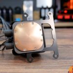 Now you can lower the CPU block into place aligning the upper bracket holes with the threaded part of the standoff. Once the cooler is in place fasten down using the spring-loaded thumbscrews, and ensure the screws are tightened evenly and progressively.